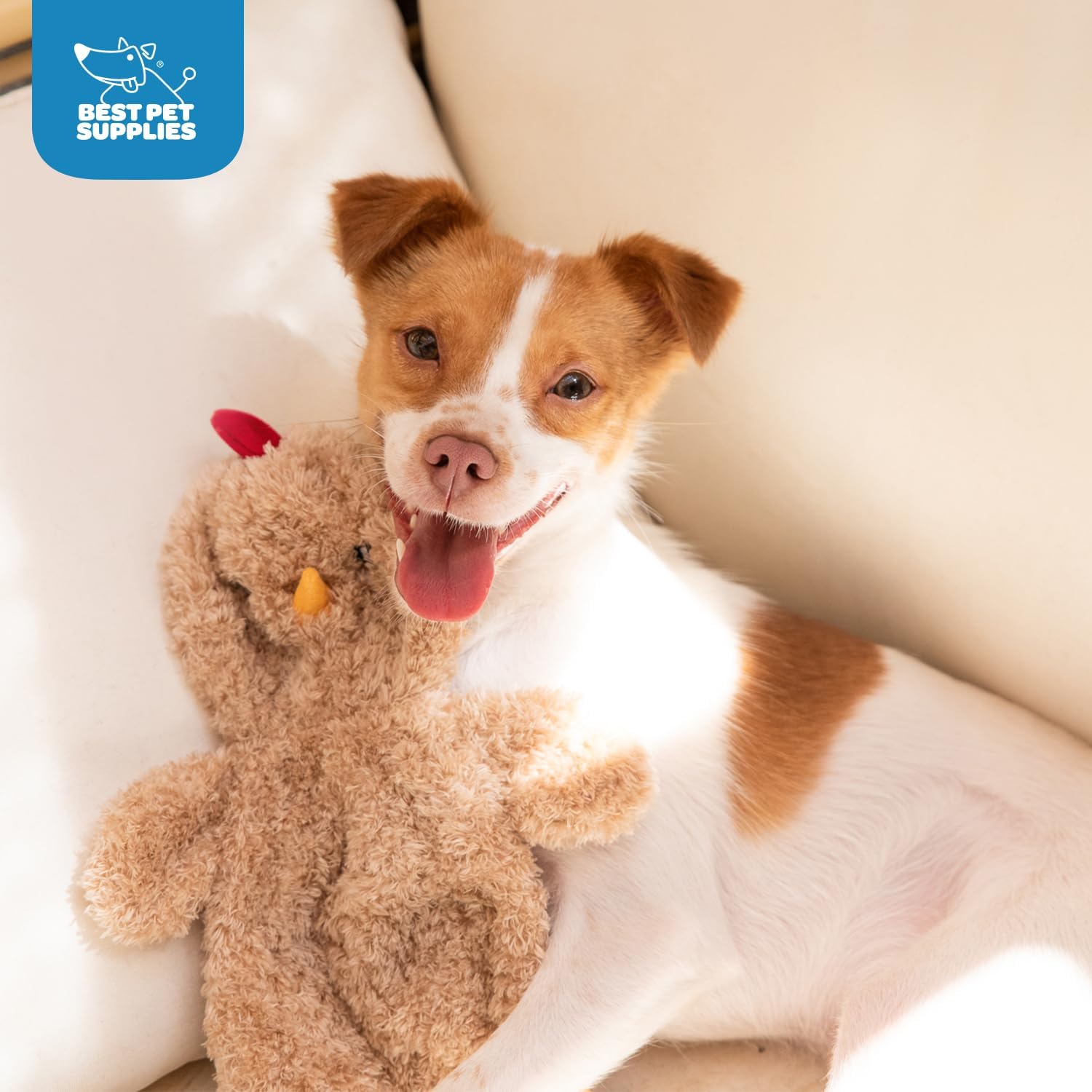 Best Pet Supplies Interactive Squeaky Dog Chew Toy, Ideal Dog Toys for Chewers, Small, Medium & Large Dogs, and Fetch Lovers - Crinkle Chicken (Khaki), Large