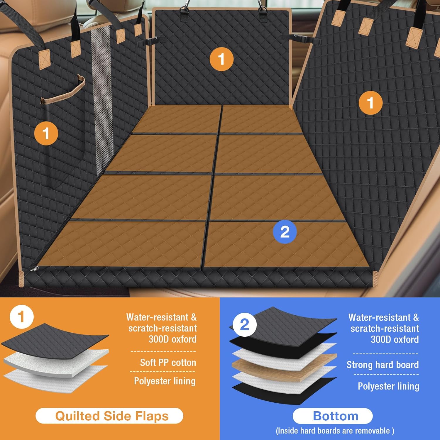- 【No More Pets Falling】The back seat cover for dog features sturdy bottom board, which is strong enough to support your dog with dog safety seat belt to prevent your pet from sliding during drive.