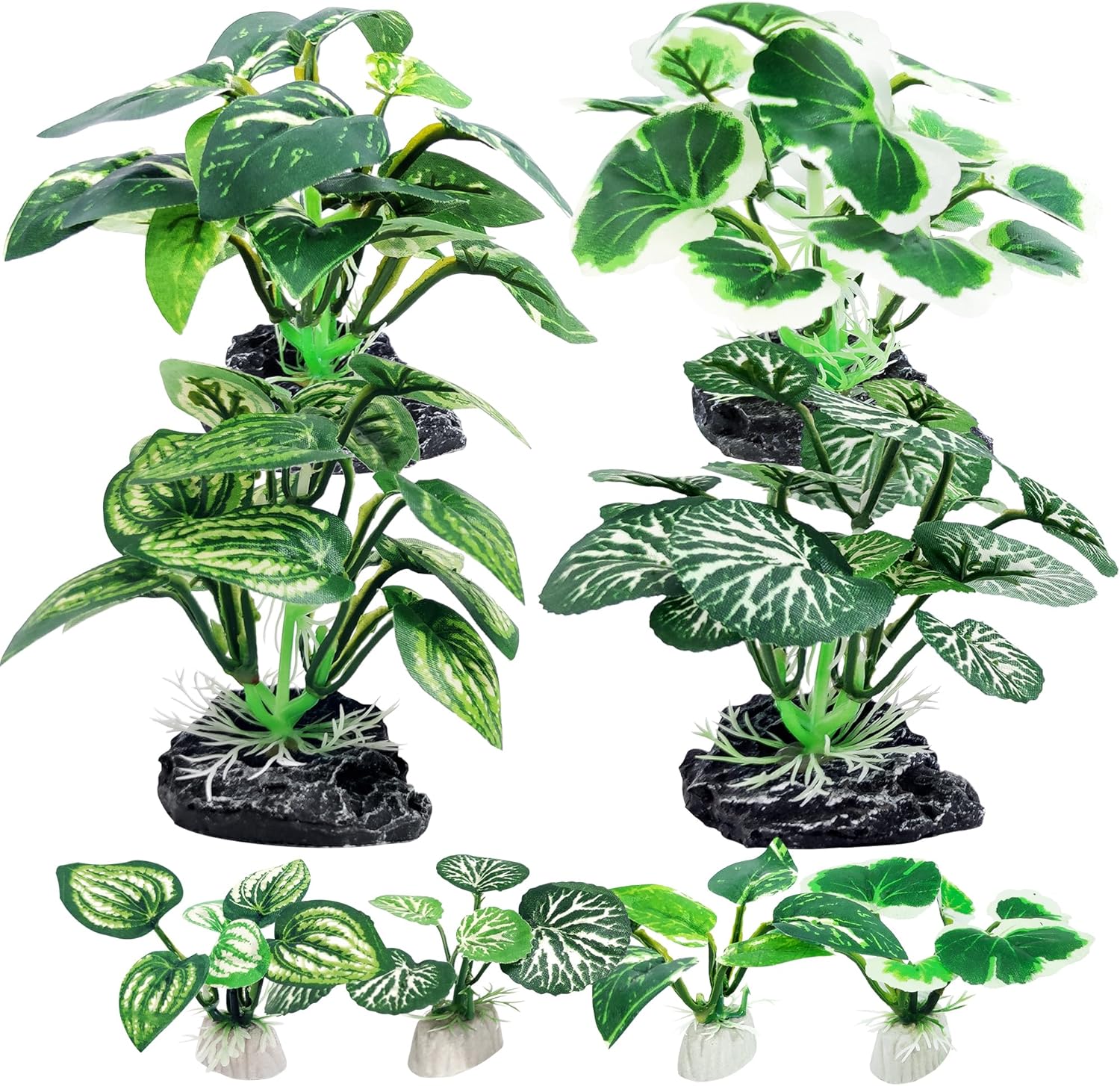 - Material: The aquarium plastic plant is made of soft and healthy materials, there will be no discoloration and safe to water and fish; Each plant has its own ceramic base, which is heavy and firm, so those plants will not float around in the aquarium