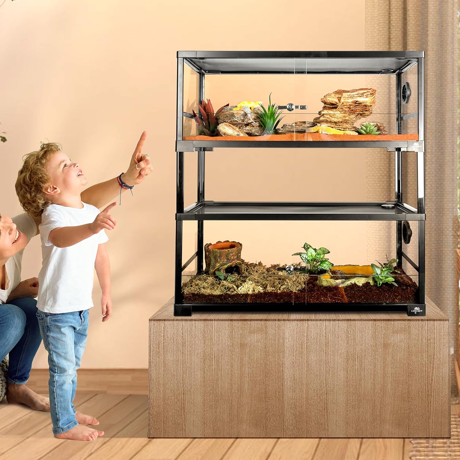 - Easy to Assemble and Clean: CAVACHEW front opening terrarium can be easy to install or disassemble with instructions, and the necessary tools for installation are included in the package, glass material is easy to clean, so there is no need to worry about moving or cleaning the reptile tank.