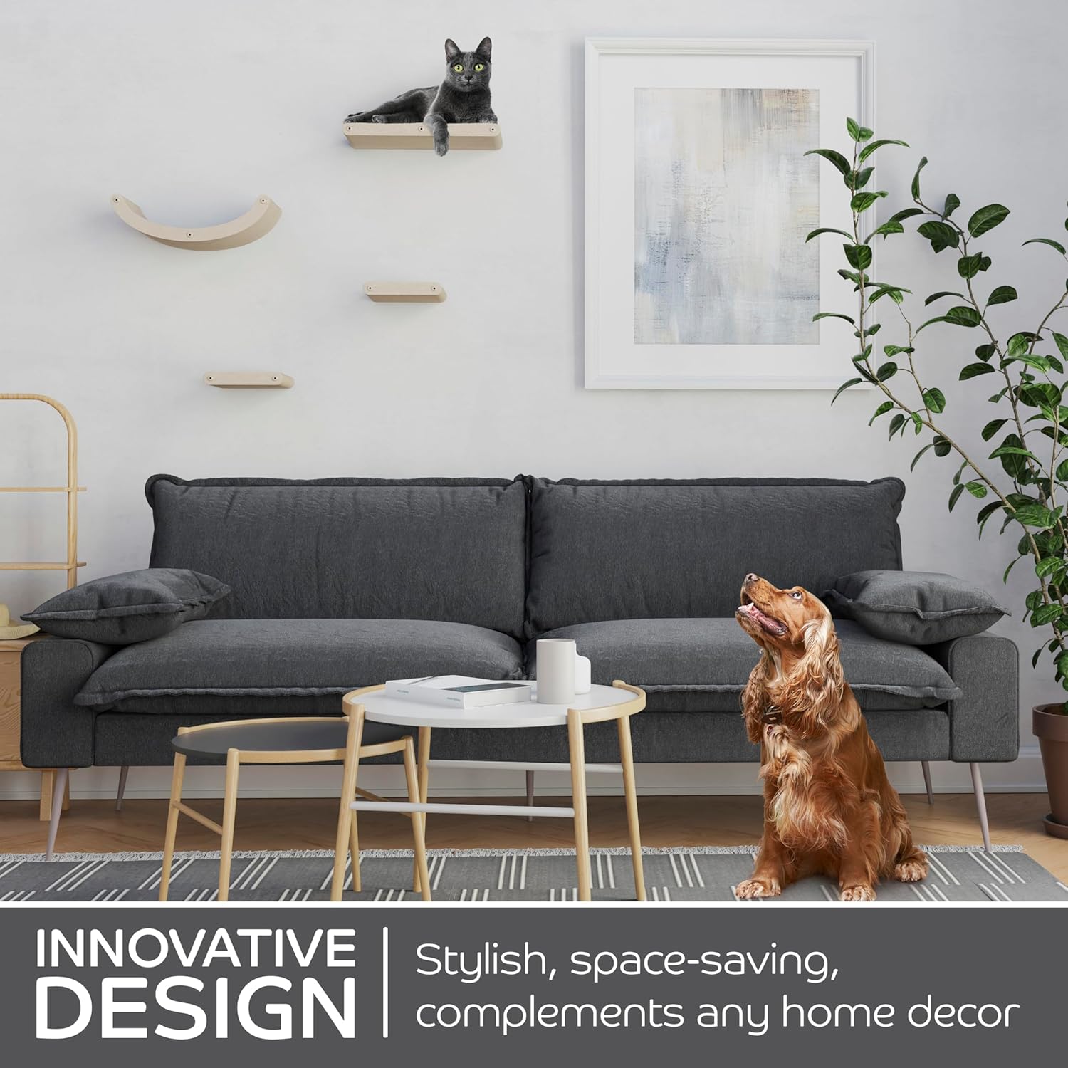 - INNOVATIVE AND SUSTAINABLE | Soft to the touch, firm in structure, and very tactile β cats love it! Our patent-pending cat shelf material is acoustic felt which is made from 100% Recycled PET bottles! It's built to withstand extended wear and tear.