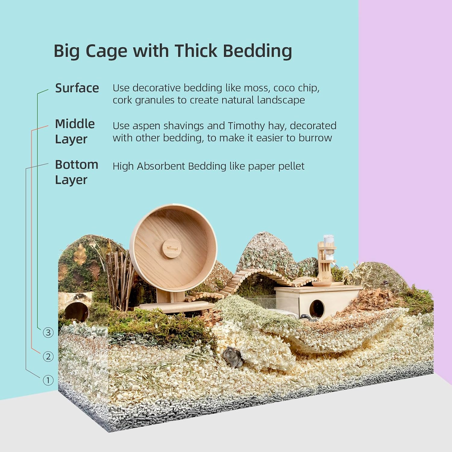 - [Perfect Critter Bedding And Digging ] You just need to randomly sprinkle the wood wool aspen bedding in the small animal cage. Let your little pet create an original ecological hideout of its own. What's more, Each piece of wood wool supports each other and is not easy to collapse. The small animal bedding encourages your furry friends to dig and build a tunnel system.