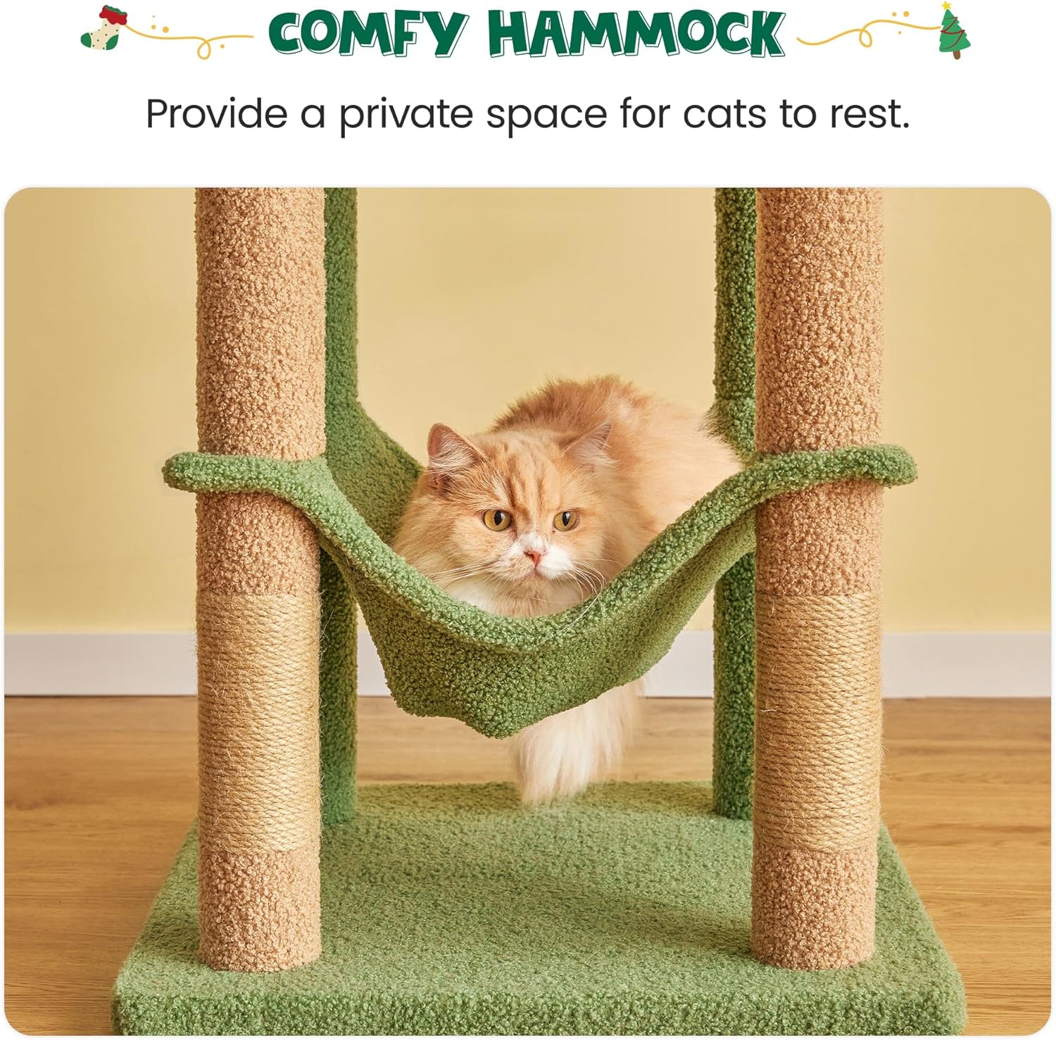 - 【ULTIMATE CAT-TAINMENT IN GREEN】- The MWPO 63.8-Inch cat tree now comes in a vibrant green color that blends in perfectly with any decor, and offers ample space for your feline friend to explore, play, nap and scratch to their heart's content.