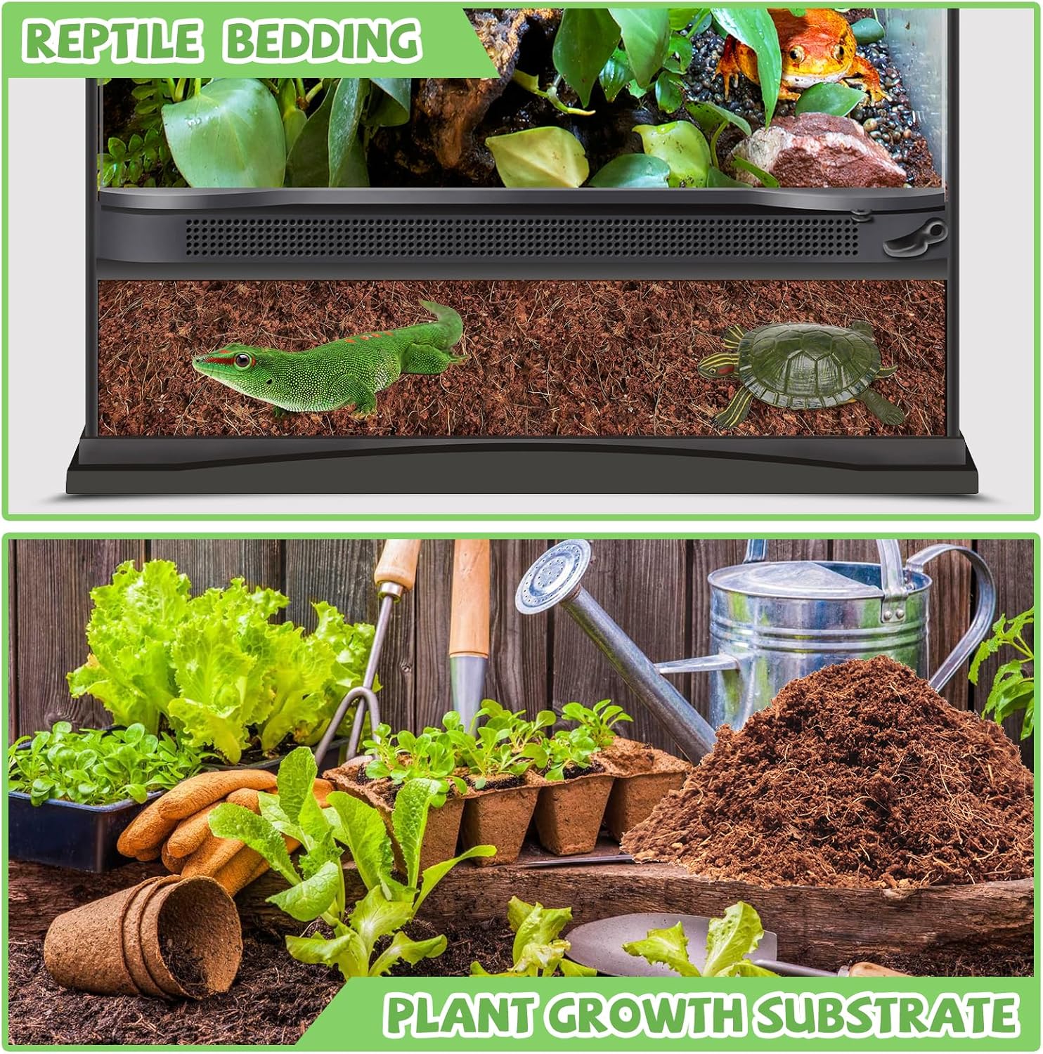 - Universal Aquarium Substrate: Coconut substrate terrarium bedding is very soft and comfortable with good breathability, even your pet can breathe freely in the coconut soil. Suitable for frogs, hermit crabs, snakes, turtles, frogs, lizards, chameleons, geckos, salamander,snails and orb pythons, and spiders and other burrowing animals, you can use it to keep your pets with confidence