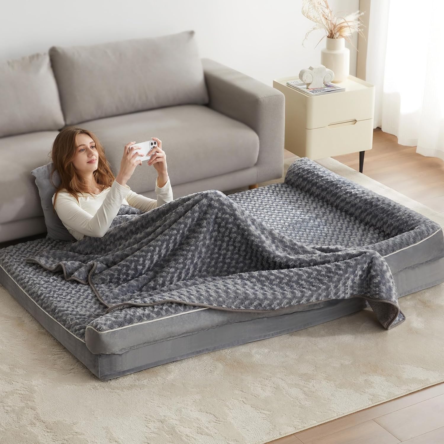 - EASY TO CLEAN&NON-SLIP: The sofa dog bed comes with a removable and washable dog pillow cover to ensure that the big dog bed can be easily cleaned. The washable dog bed has a durable zipper that allows for easy removal and reattachment. The non-slip rubber particles of the waterproof dog bed bottom hold it in place on the floor without sliding.