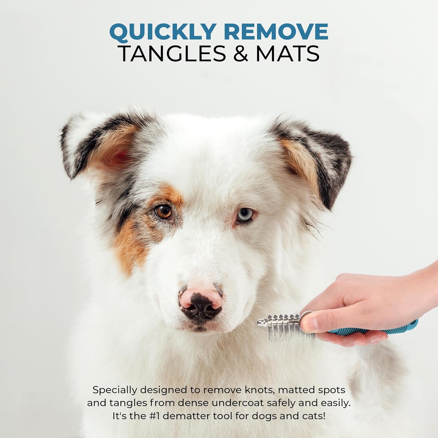 - LONG STEEL BLADES: Fitted with extra long 2.5β stainless steel dematting blades, this unique pet grooming tool reaches deep into thick fur to quickly break up knots, mats & tangles. It's the best grooming rake for undercoat brushing!