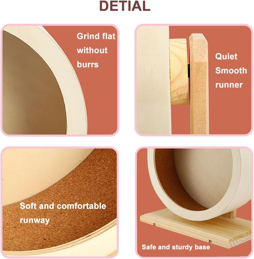 - 【Noiseless Exercise Wheel】 Designed by wooden with a very low noise level,and dual ball bearings, so can quiet keep it on spinning smoothly, even your little friends working out on the hamster exercise wheel in the night time, you still have a sweet sleep.