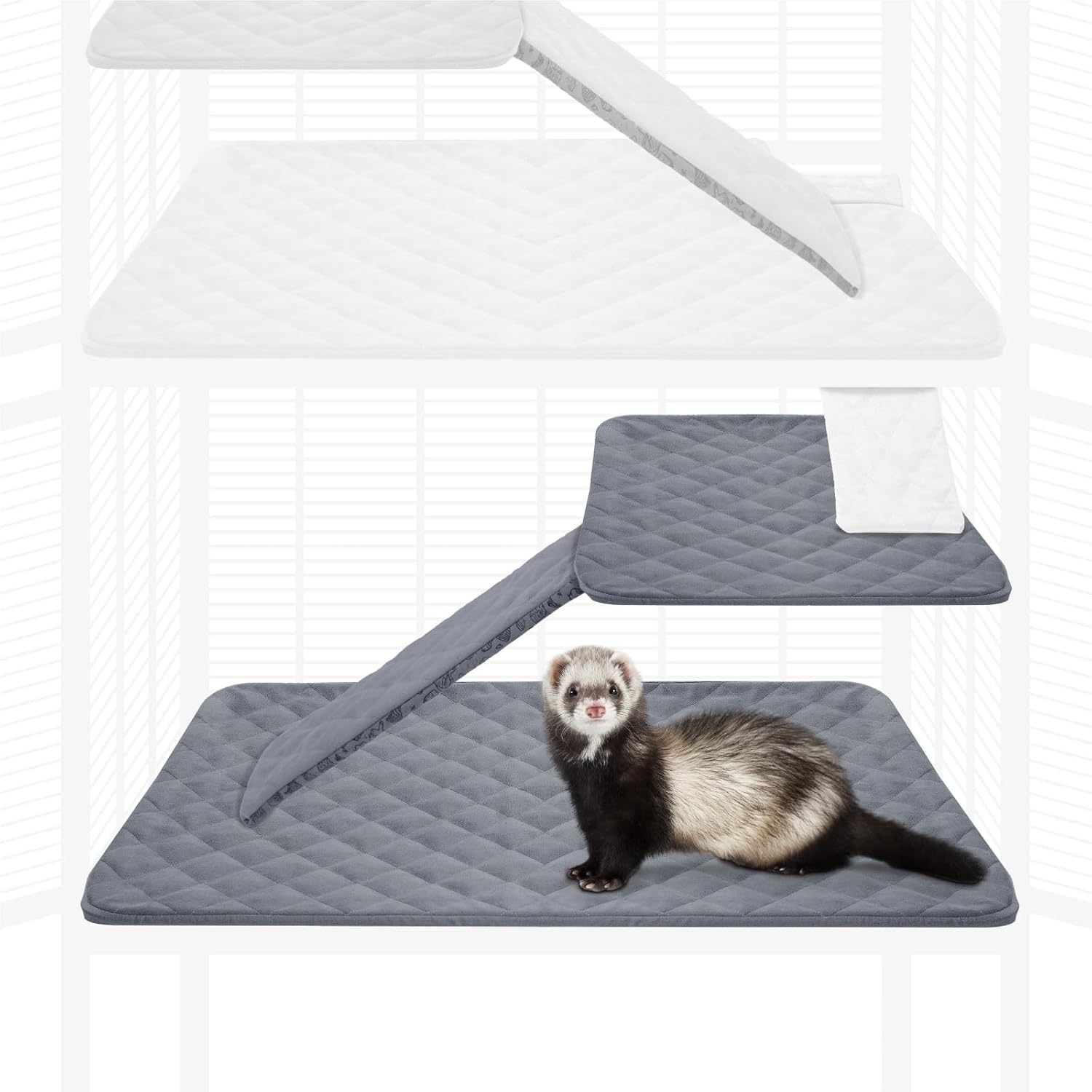 Paw Inspired Fitted Fleece Cage Liner Set for Ferret Nation, Critter Nation Single Unit (Bottom Pan Liner, Ramp Cover, Shelf Liner) for Ferrets, Rats, Chinchillas, Hedgehogs, Small Animals (Gray)