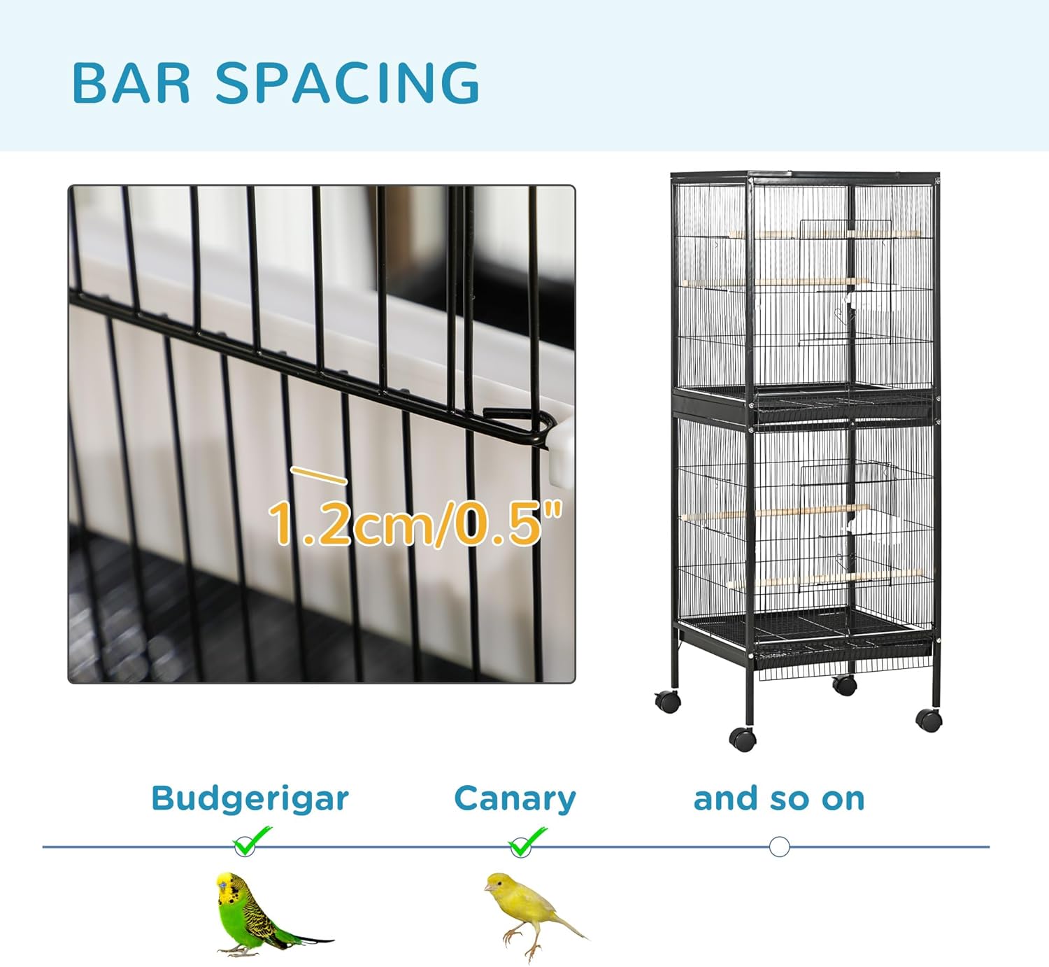 PawHut Large Bird Cage with 1.7 ft. Width for Wingspan, Bird Aviary Indoor with Multi - Door Design, Fit for a Canary, Finch, Conure, 55", Black
