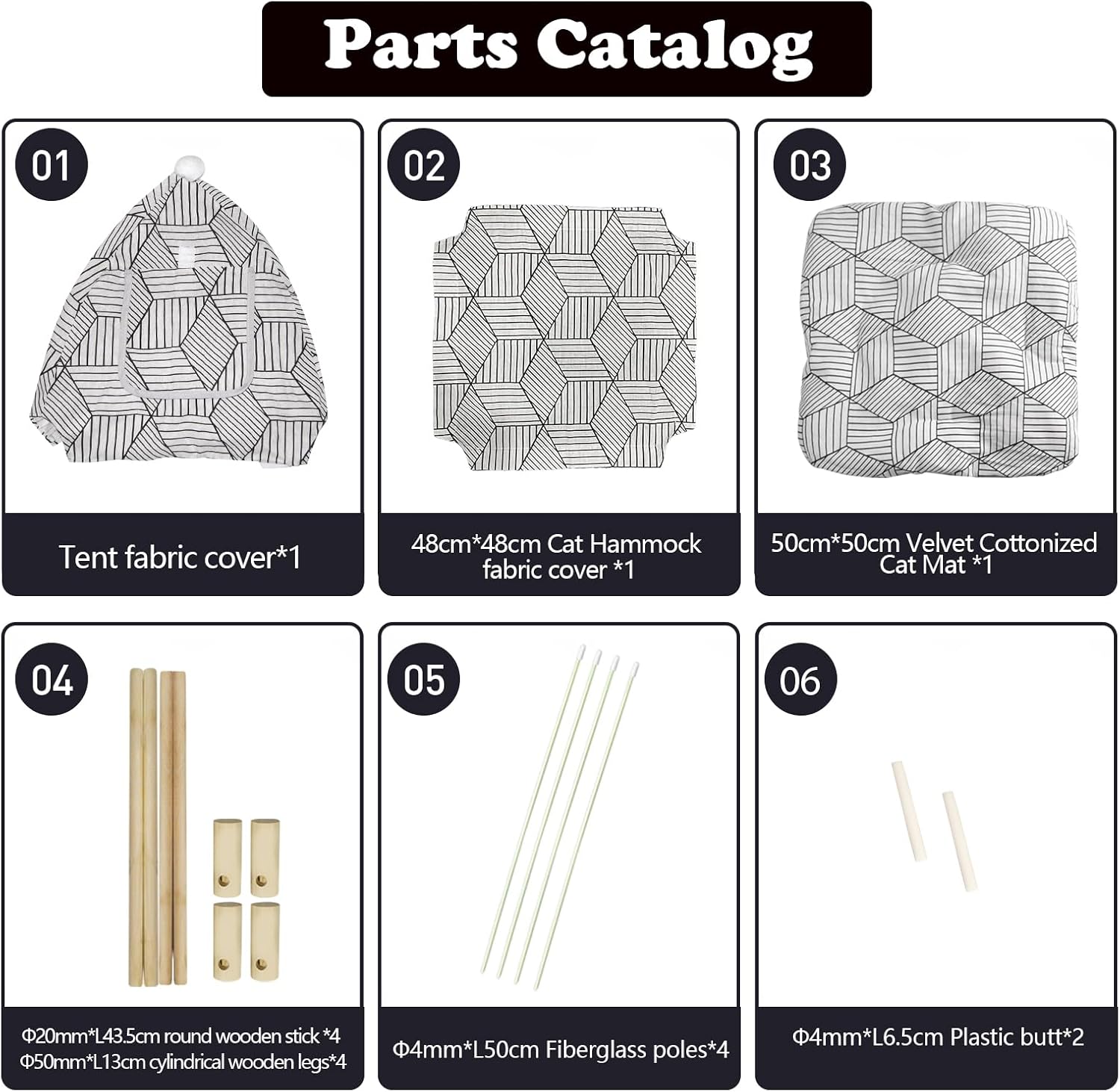 - PINE TREE MATERIAL FRAMEWORK: The supporting wooden poles of animal tents are made of polished natural wood. It is solid, healthy, safe, and safe. Make your beloved pet healthy sleep and suitable for Outdoor Cat TENTS for Indoor Cats.
