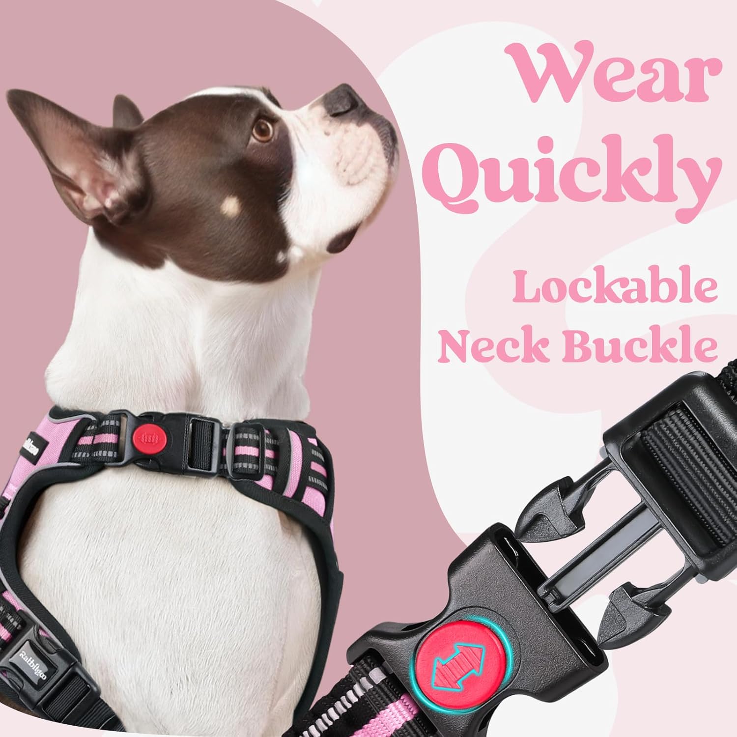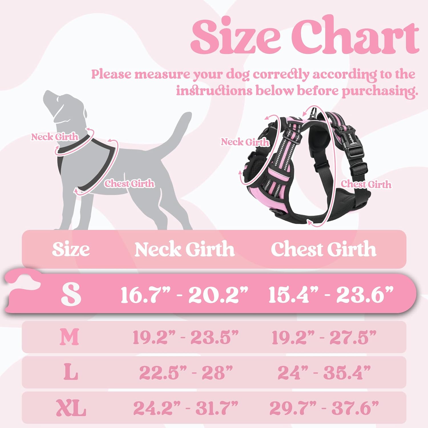 rabbitgoo Dog Harness Small Sized, No Pull Pet Harness with 3 Buckles, Adjustable Soft Padded Vest with Control Handle, Walking Reflective Pet Vest for Small Dogs, Pink, S