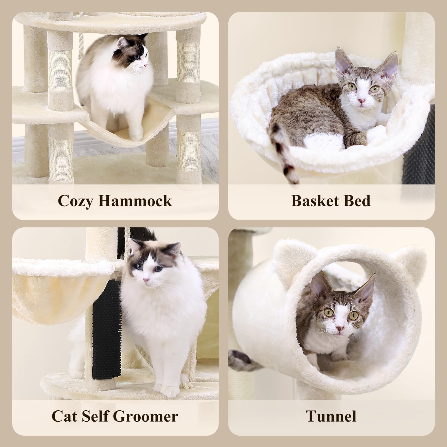 Globlazer Artistic Curved Cat Tower for Small Cats (Under 12 lbs), 81-inch Slim Design Cat Tree with Space-Saving Design, Indoor Cat Condo with Hammock & Tunnel, C81, Beige, Non-Large Cats