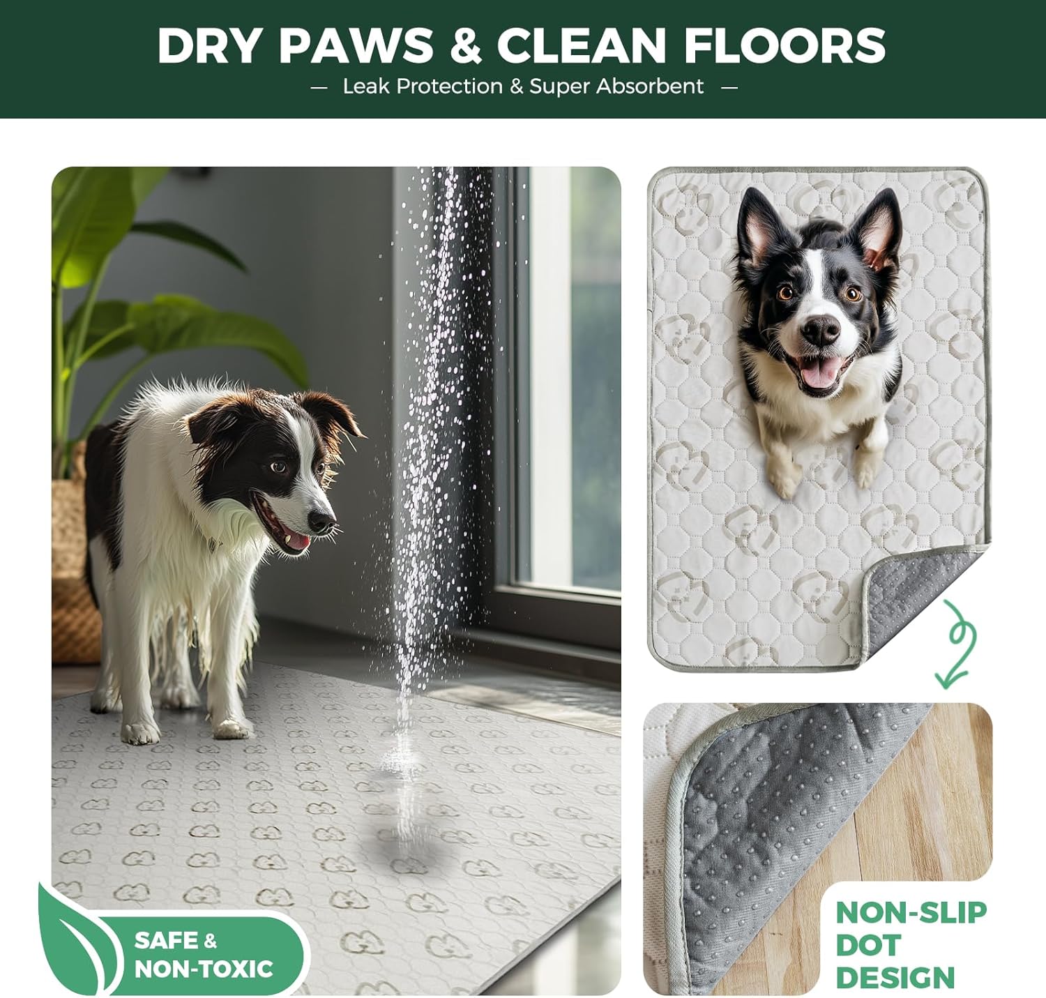 - Over 100x Reusable & Eco-friendly: Our puppy mats are machine washable and built to last over 100 uses. These reusable puppy pads for dogs are an eco-friendly, cost-saving choice β our dog training pad costs 5 times less per use than disposables.