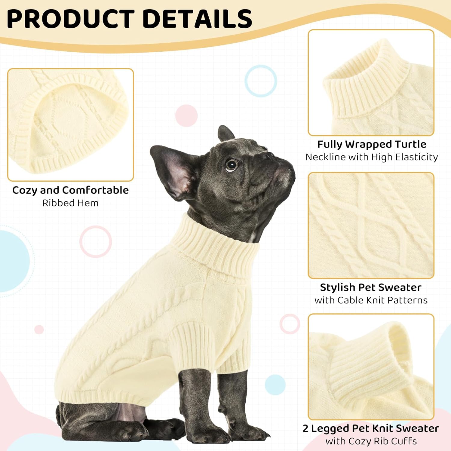 - TURTLENECK & FULLY BELLY WRAP PULLOVER - The knitted large dog jacket is a turtleneck pullover that can fully wrap your pet's neck, chest & belly snugly and keep warm well. The dog sweaters XXL are the best for winter dog outfits.