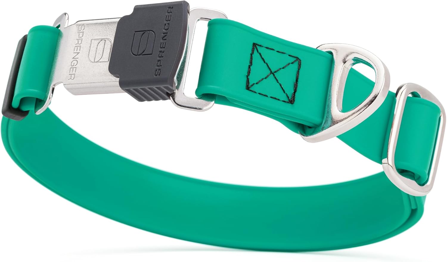 Dogline Biothane Waterproof Dog Collar with Herm Sprenger Black Stainless Steel Quick Release Buckle – Heavy Duty Tactical Durable Collar for Dogs – Comfortable and Safe Pet Collar W 1" L 15-25" Teal