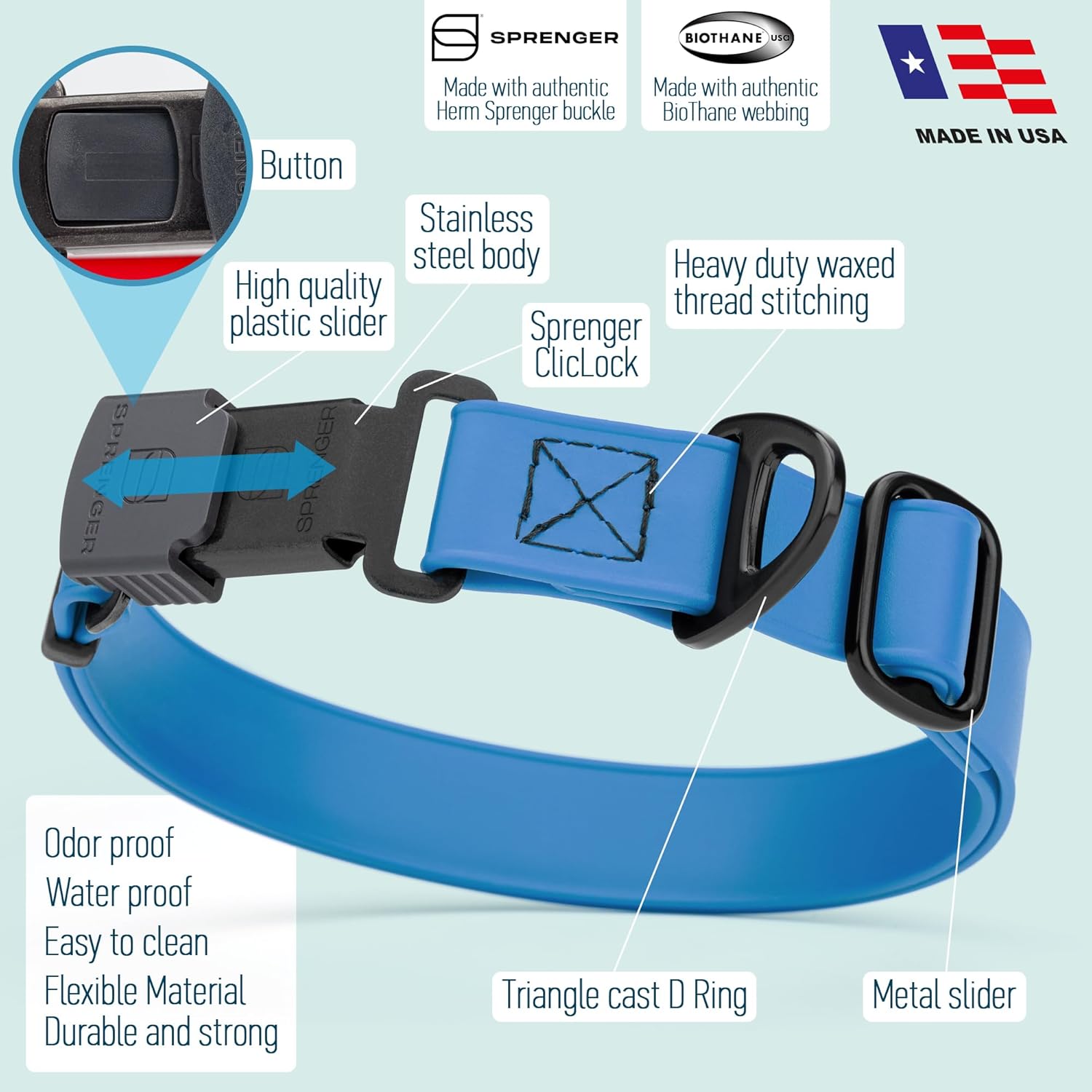 - Authentic Herm Sprenger Stainless Steel Cliclock Buckle: This patented Herm Sprenger ClicLock buckle is made of high-quality stainless steel. When closed, the ClicLock makes a clearly audible "click" indicating secure closure. High quality stainless steel materials are rust-proof and German manufacturing ensure it will last for years.