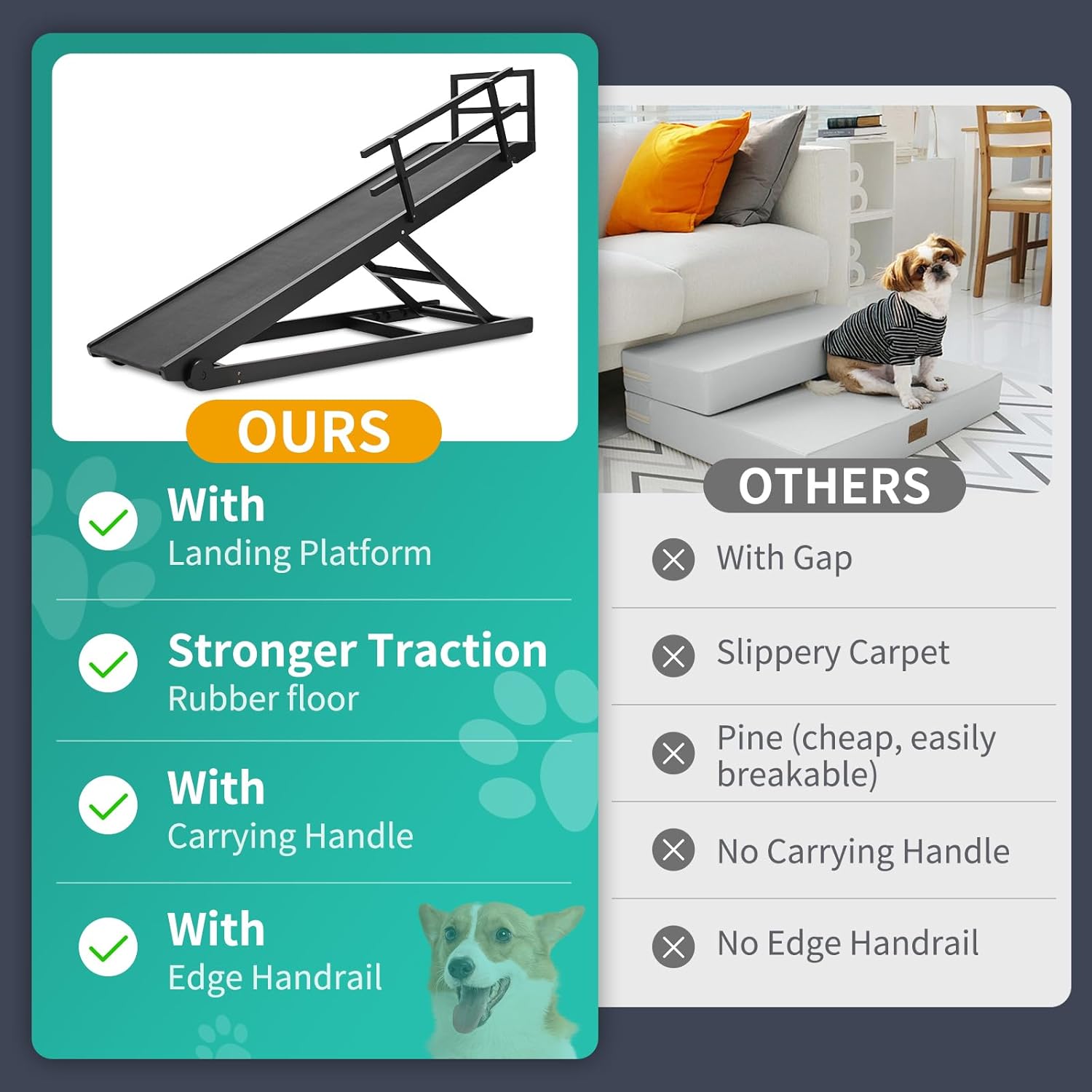 - 5 HEIGHT ADJUSTABLE - Our Pet Ramp can be easily adjusted to 5 heights, you can adjust the appropriate height for your dog ramp according to the height of your bed, sofa and other furniture. Adjustable height to 17.7", 21.6", 25.5'', 29.5'' and 31.4", letting your pet easily go up and down now