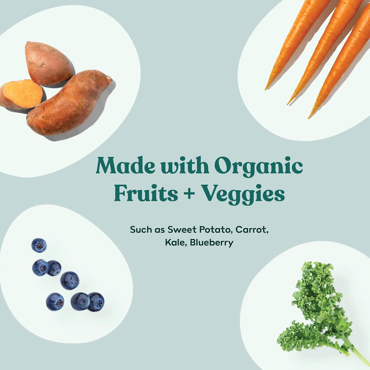 - ๐ฅฆ ORGANIC FRUITS & VEGGIES FOR FIBER: Packed with organic fruits and vegetables, like sweet potatoes, blueberries, and spinach, offering natural fiber, antioxidants, and digestive support. Helps maintain a healthy gut and immune system.