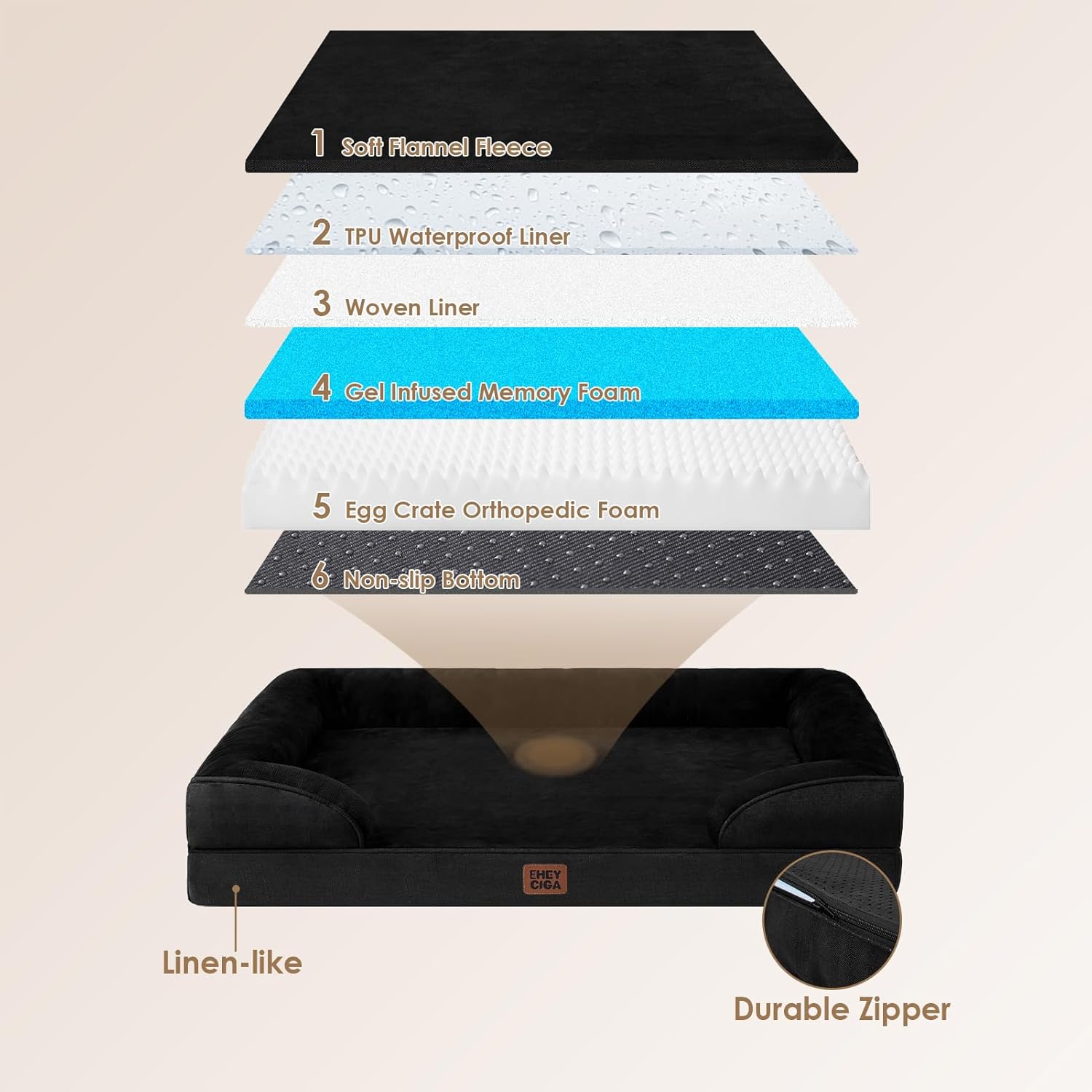 EHEYCIGA Orthopedic Dog Beds for Large Dogs, Waterproof Memory Foam Large Dog Bed with Sides, Non-Slip Bottom and Egg-Crate Foam Pet Couch Bed with Washable Removable Cover, Black