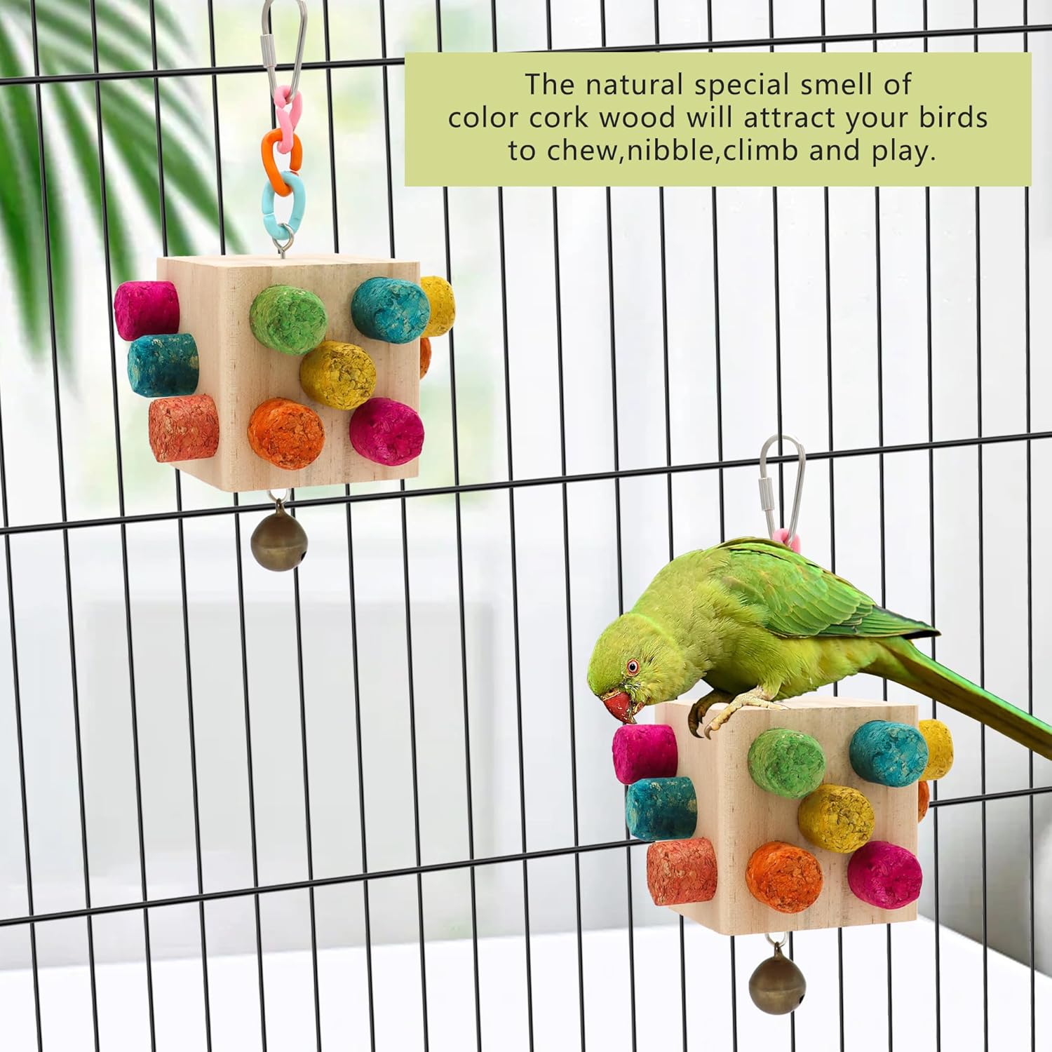 - [Natural Materials] Bird chewing toys for birds is made of natural wooden square perch with corks,harmless to pets,safe to chew.