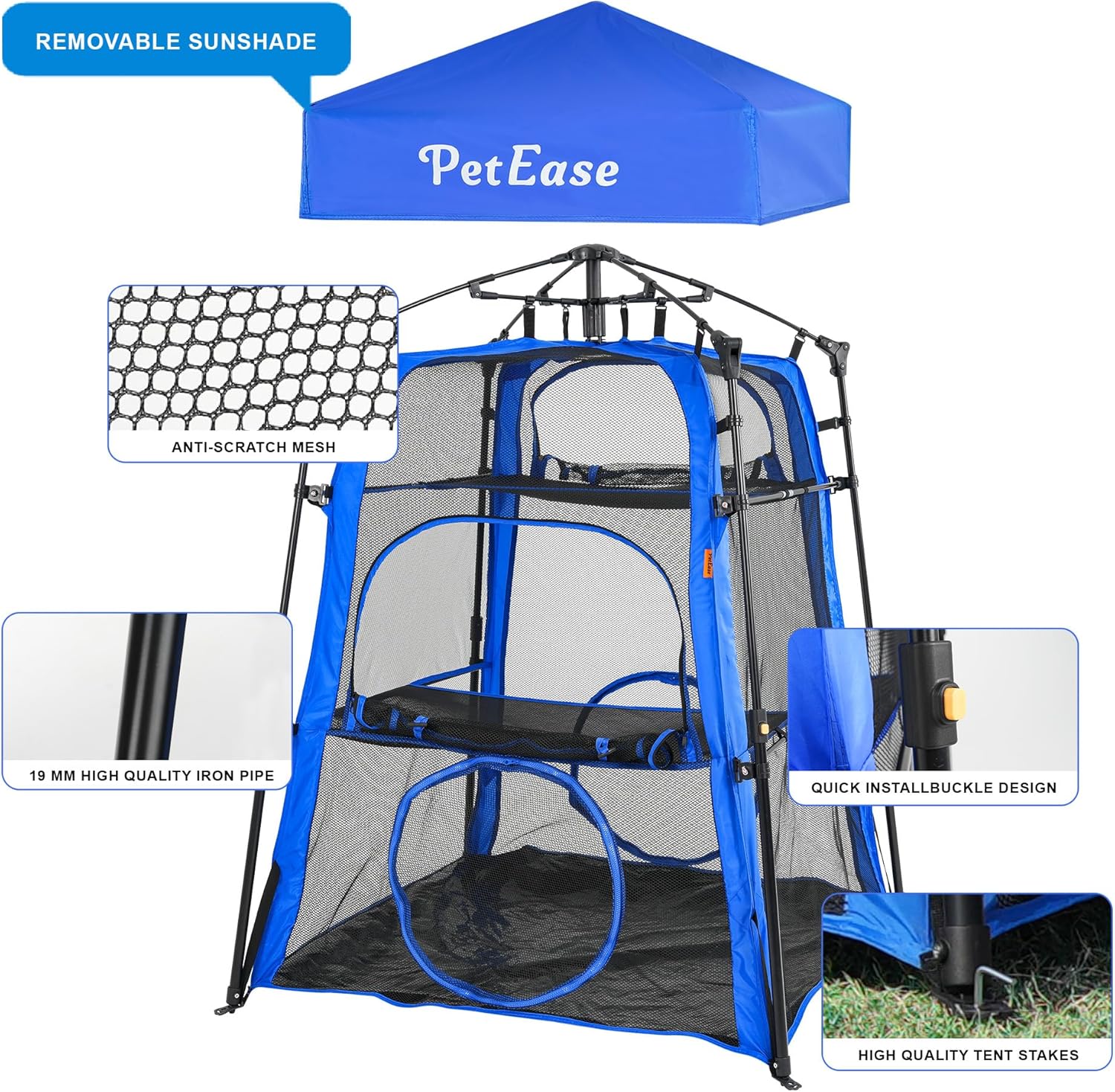 - MORE STABLE: Made of durable and high-quality mesh, with our latest head design, thicker poles and reinforced corners. Each layer was fixed with a fiberglass rod.4 ground nails and 19mm iron bracket make the cat tower tent more stable and durable,suitable for any patio, lawn, balcony, etc.