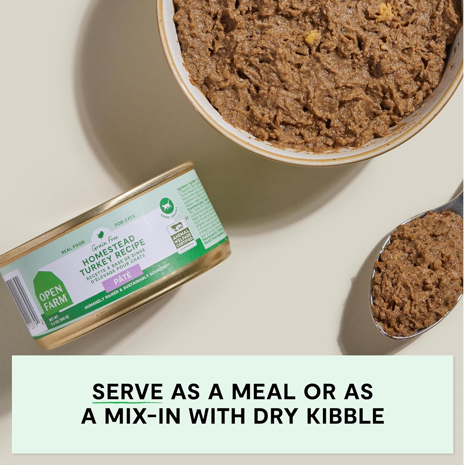Open Farm Canned Cat Food, Paté for Complete & Balanced Nutrition, Grain-Free and Legume-Free Wet Cat Food, Homestead Turkey Recipe, 2.8oz Cans (Case of 18)