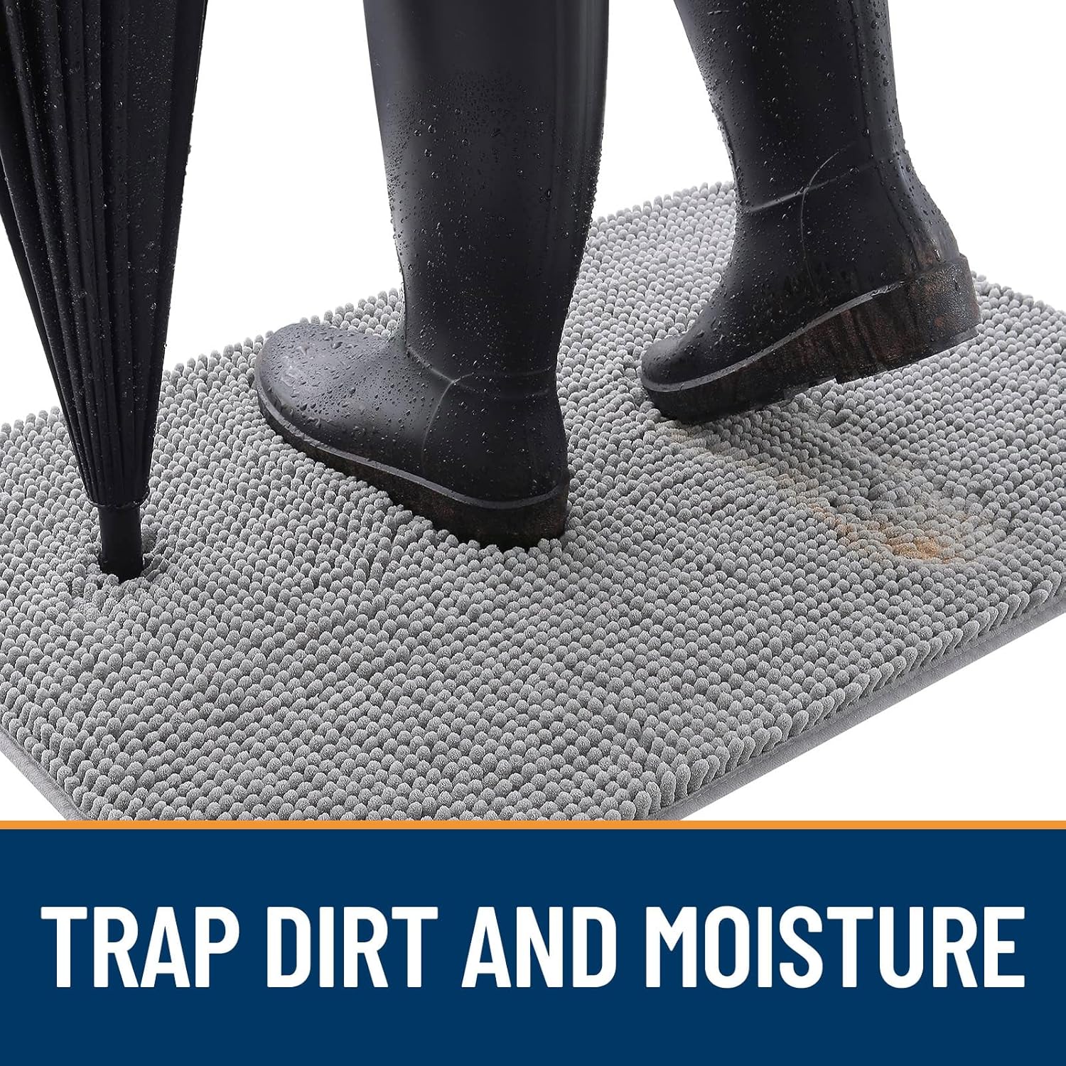 OLANLY Dog Door Mat for Muddy Paws 24x16, Absorbs Moisture and Dirt, Absorbent Non-Slip Washable Doormat, Quick Dry Chenille Mud Mat for Dogs, Entry Indoor Entryway Carpet for Inside Floor, Light Grey