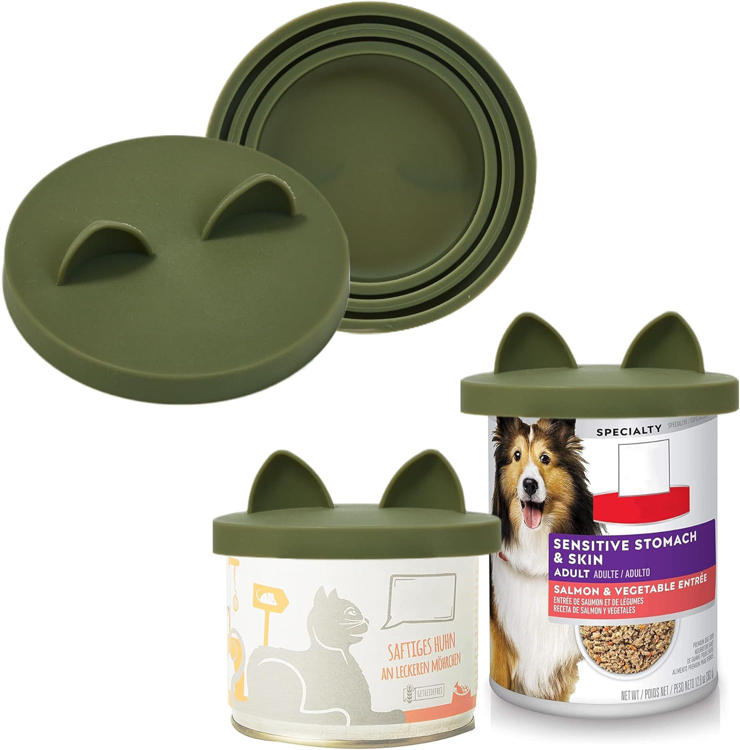 OHMO 2 Pack Dog Food Can Lids, (3, 12, 14oz etc.) Universal Size BPA Free Silicone Covers for Cat and Pet Food, Camo Green