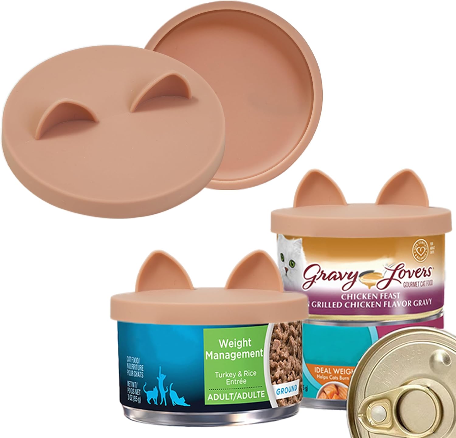 OHMO 2 Pack Cat Food Can Lids, Small Size (3 oz) Silicone Pet Food Can Lids Covers for 3 oz Cat Food Cans