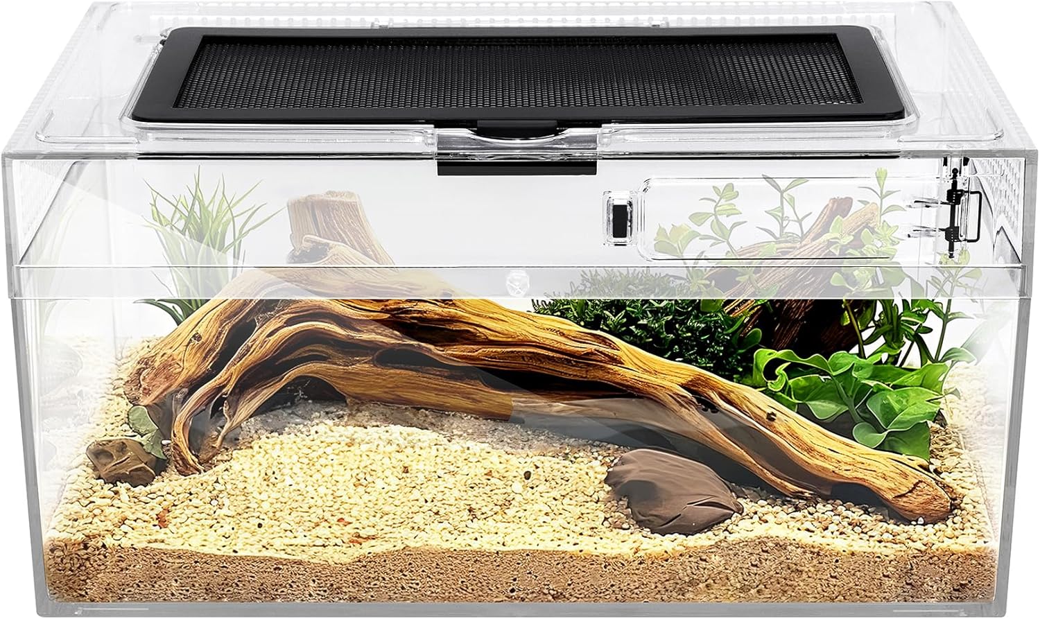 - 360Β° FULL VIEWING EXPERIENCE: Made of high-transparency PC material, this vivarium tank ensures a panoramic view of your reptile's world. Enhance your observation with an enclosure that brings the captivating reptilian habitat closer to you