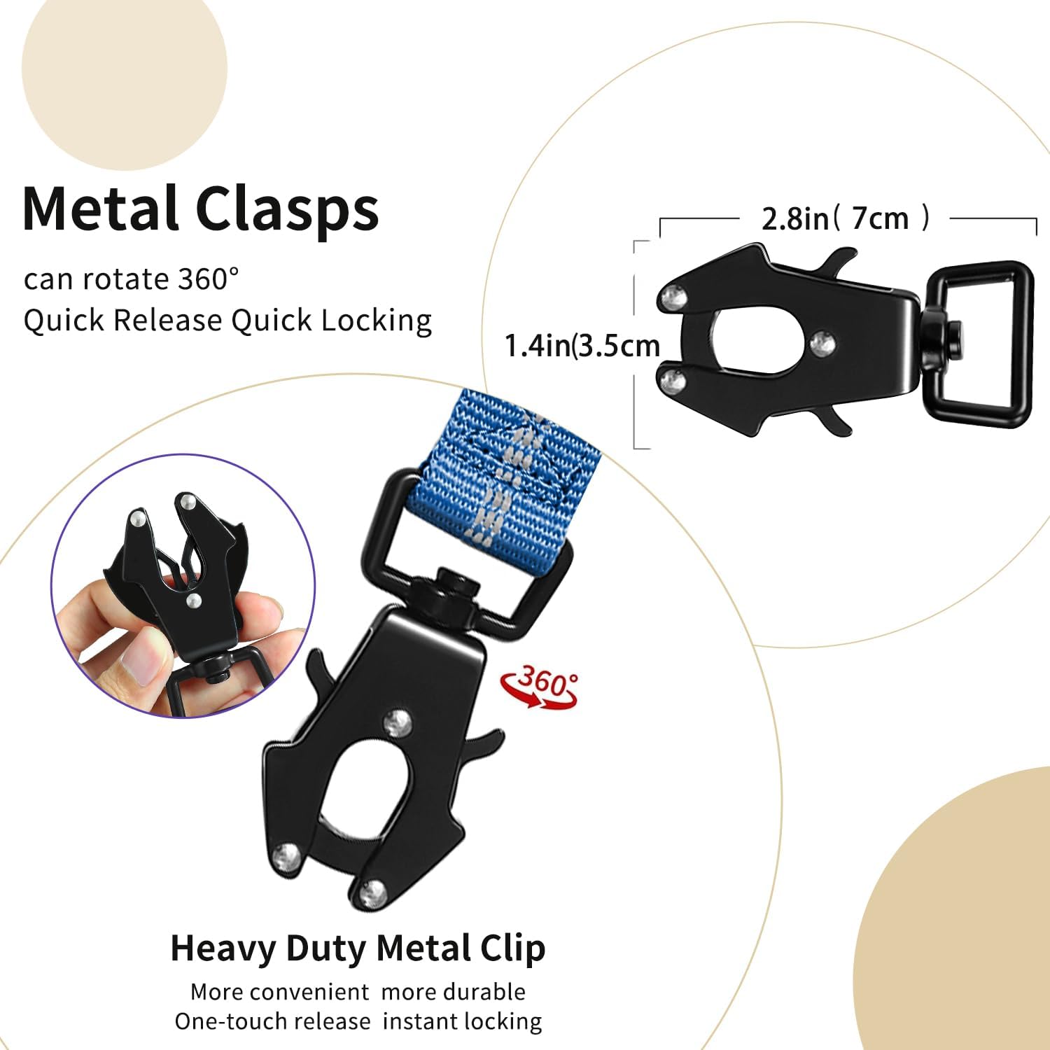 - 【🐕Quick Release Frog Clip 】The 360° Rotating Frog Clip is made of Aviation Aluminum,can hold up to 400 pounds. Quick release and locking dog leash buckle while holding tight under strong pull. 360°rotatable to prevent the dog leash from twisting and knotting.