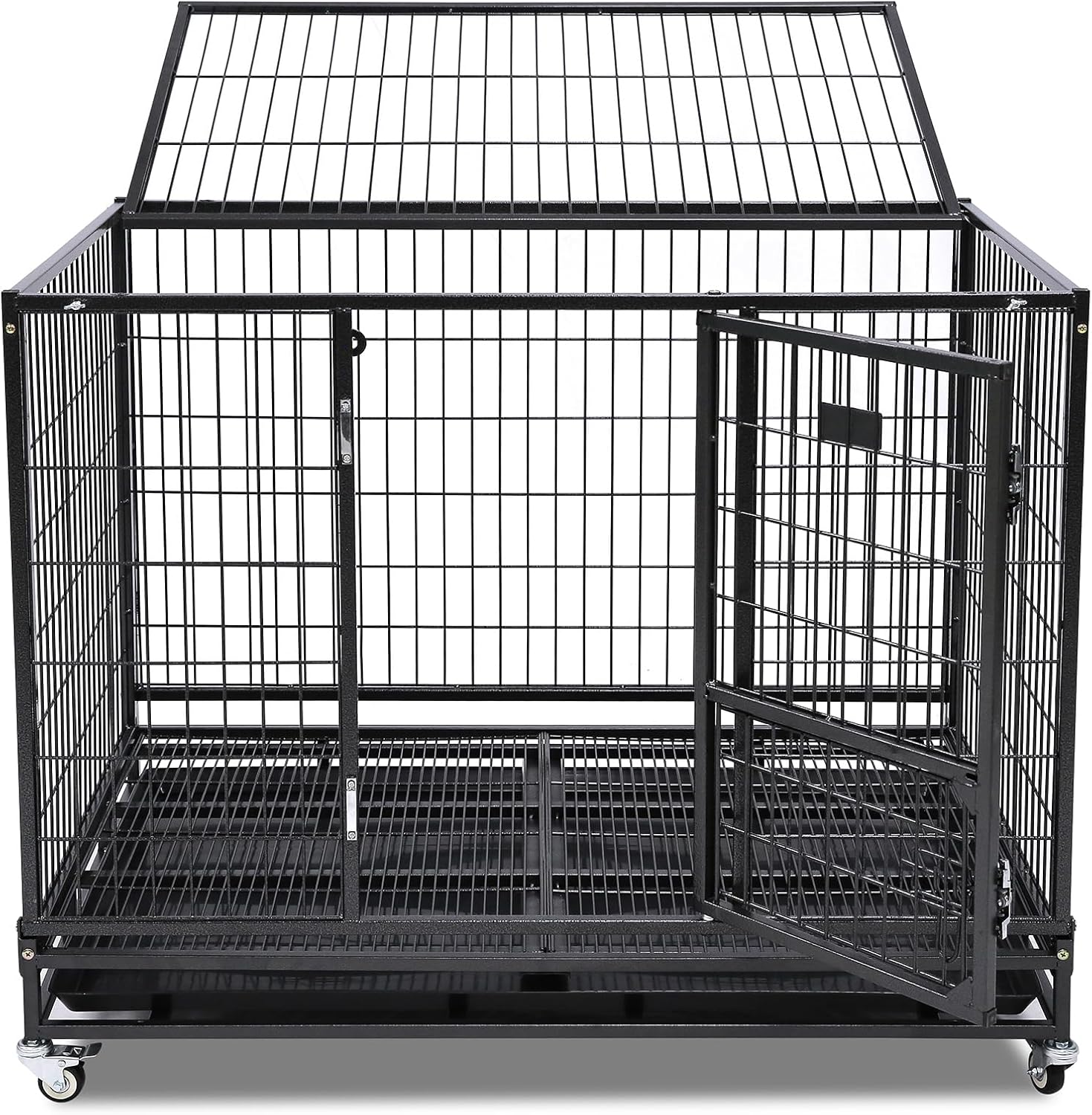 - Triple-Door Access: Features a front entry with feeding door, and an open top design for varied interaction with your pet. This dog crates for large dogs allows for easy entry, efficient feeding, and engaging training sessions, enhancing the owner-pet relationship with accessible and straightforward door mechanics