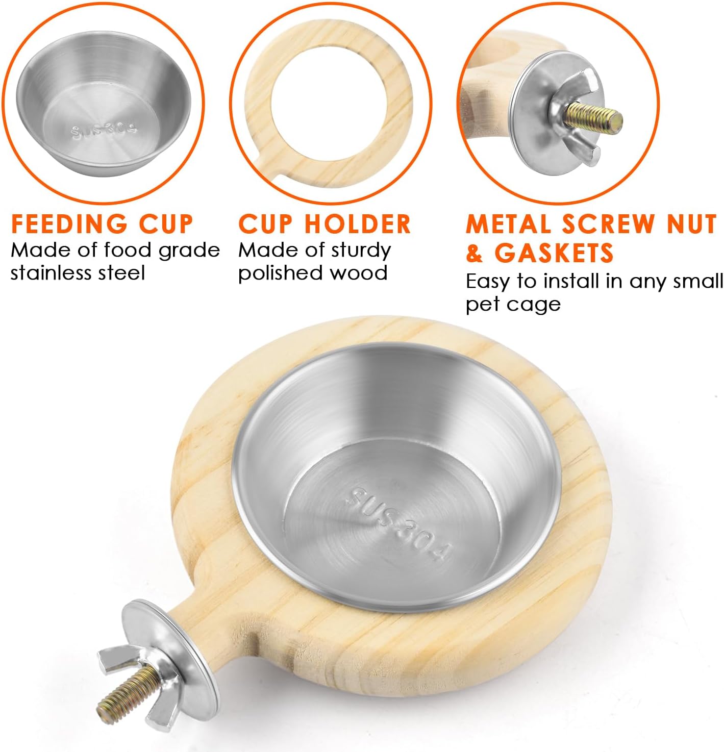 - FEEDING CUP & PERCH: KATUMO bird food bowl and wooded perch holder are combined in one, suitable for parakeet, canary, conure, lovebird, budgie and more small pets.