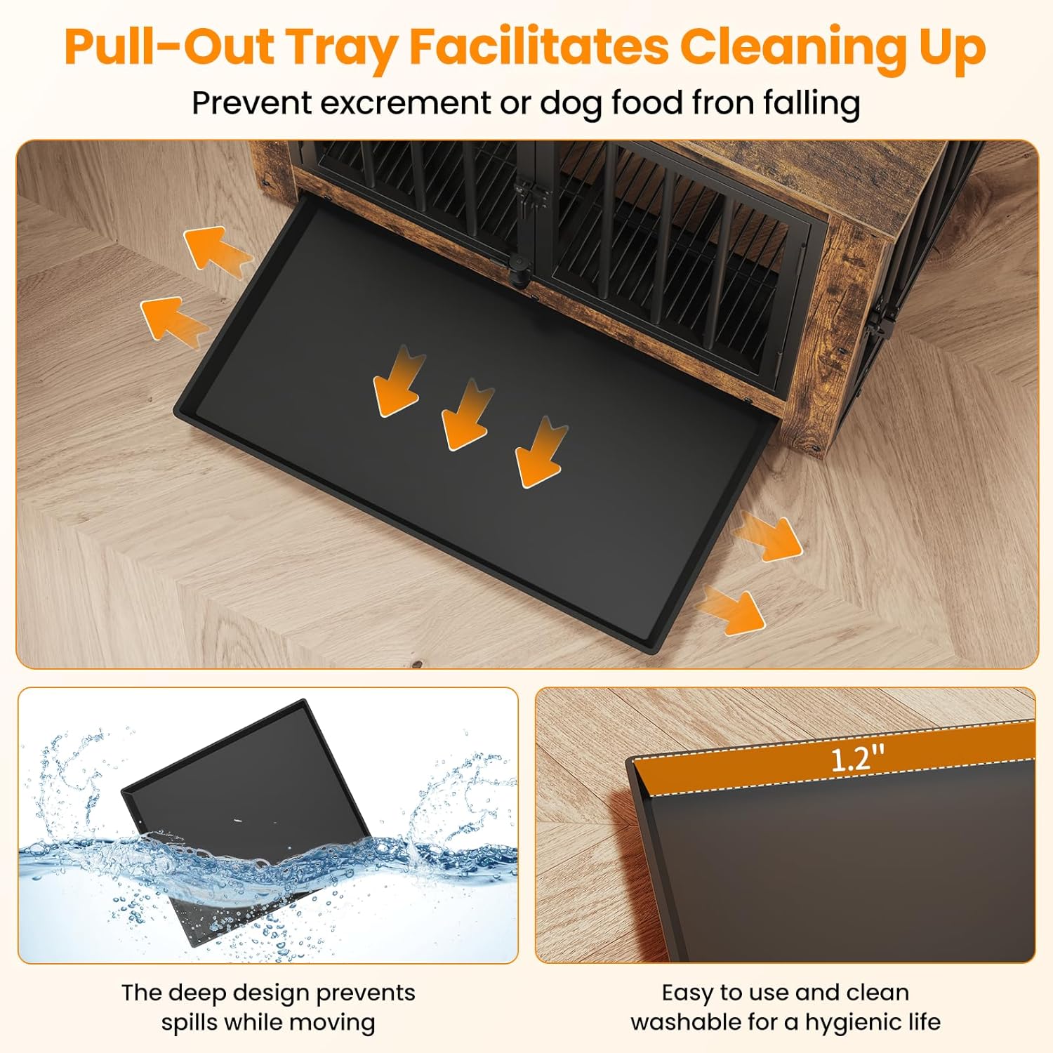 - ăVersatile Tray UsageăPut the tray under the bottom mesh to catch crumbs, fur, and dirt, keeping your dog's place clean without dirtying your floor, maintaining a tidy living space for your pet, or place the tray above the mesh to offer your dog a flat, comfortable surfaceâit's up to you
