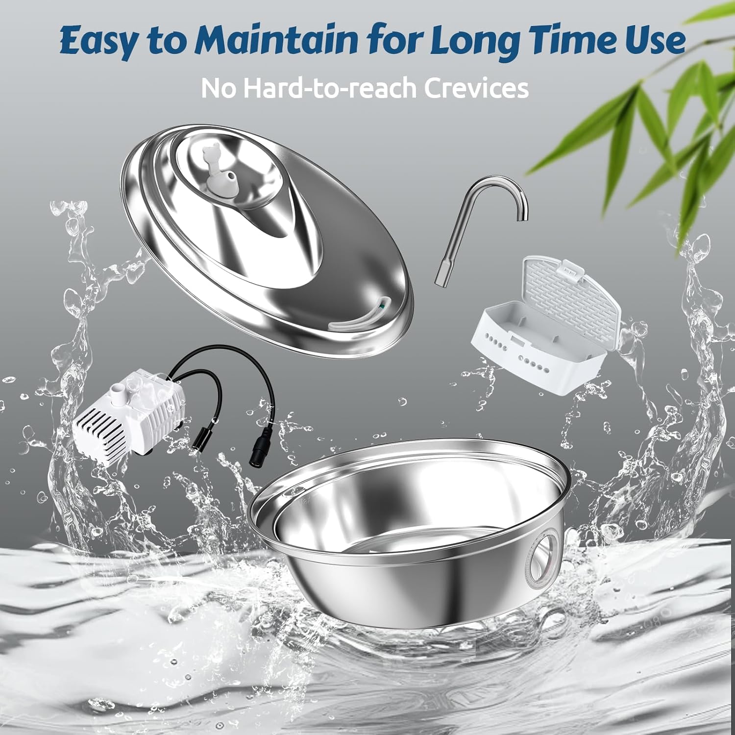 - Upgraded 304 Stainless Steel Visual Pet Fountain with Leak Proof Design: ORSDA Upgraded 3L/100oz fountain features an LED water level window, ensuring a clear view of your pets' drinking. SUS 304 food-grade stainless steel provides hygienic and clean water, while the locking lid design prevents leakage and isolates messes.