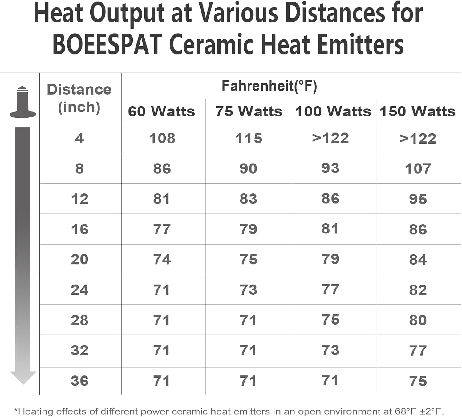 - Efficient Heat Source: Experience uninterrupted day and night cycles with our BOEESPAT Ceramic Heat Lamp Bulbs. Emitting natural sun-like heat without disrupting your pet's habitat, it ensures up to 15000 hours of consistent warmth.