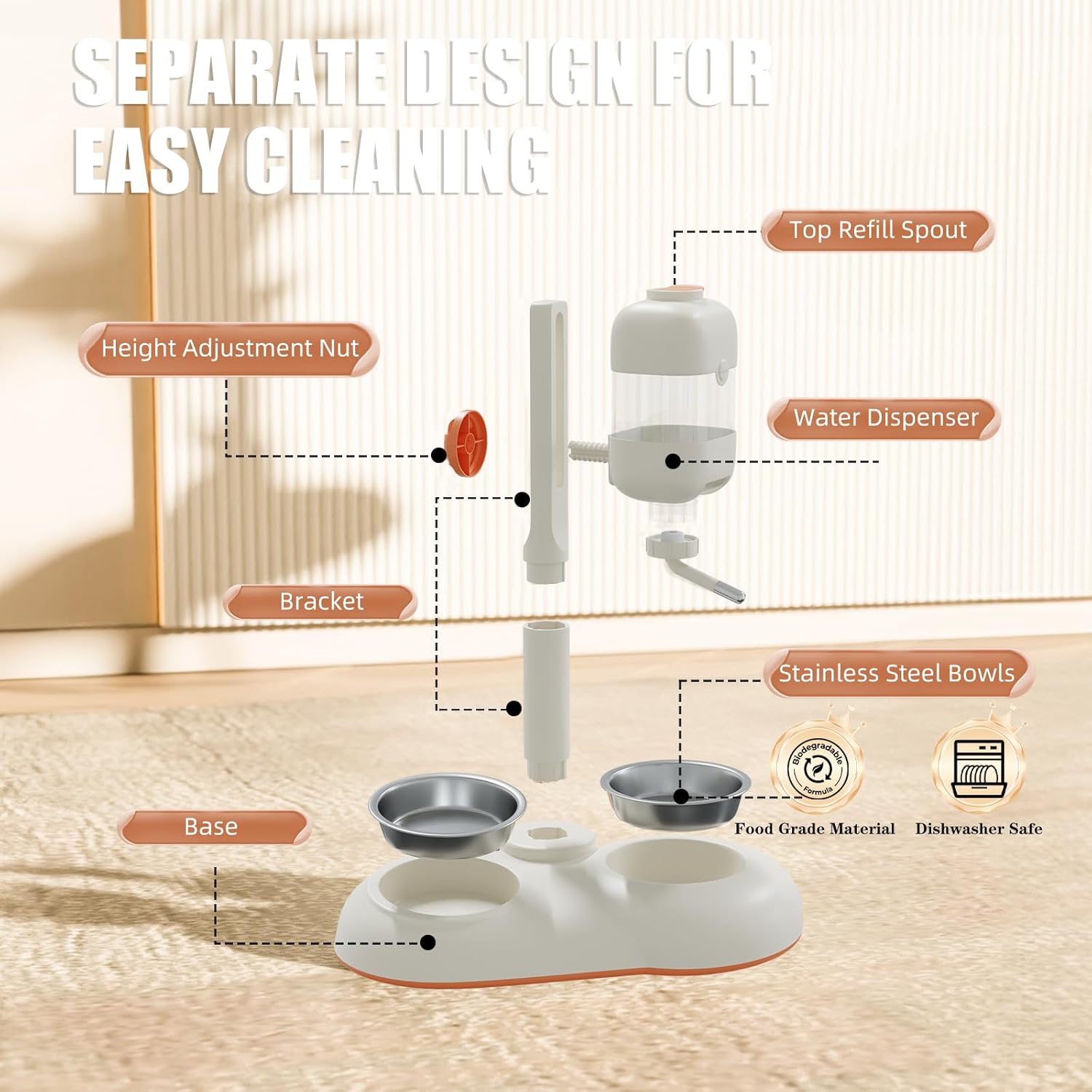 Pet Bowls,15°Tilted Puppy Food Bowls with Puppy Weaning Bottles,3 in 1 Height Adjustable Water Dispenser for Dogs,Pet Food Bowls for Ferrets,Cats,Rabbits and Small Sized Dogs(White)