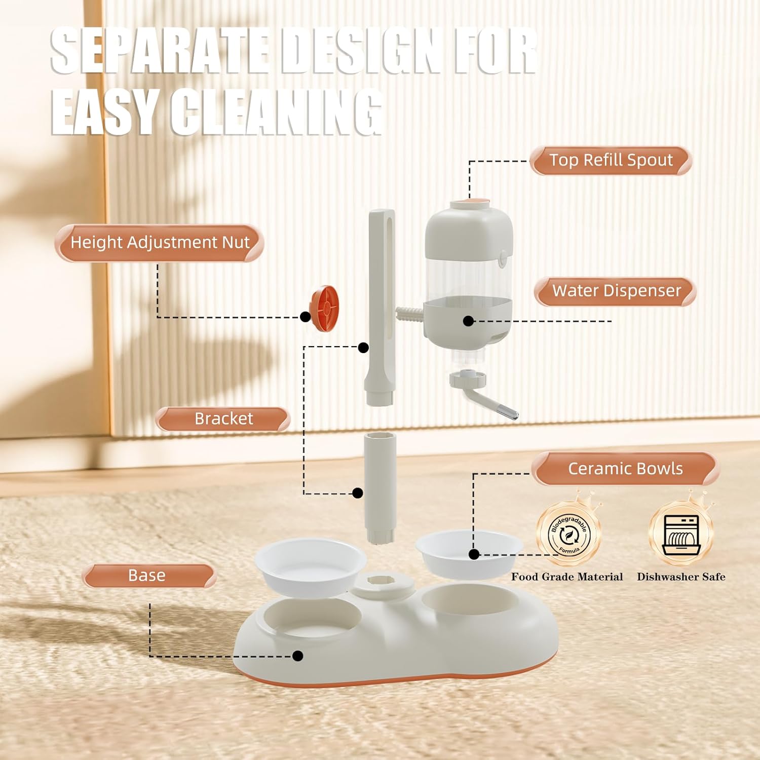 - 【Eco-friendly Material】MITOCAPY dog bowls are made of eco-friendly food-grade quality PC material, which is very safe for your pets. All parts can be easily disassembled and both two stainless steel dog bowls and ceramic dog bowls can be washed in the dishwasher.