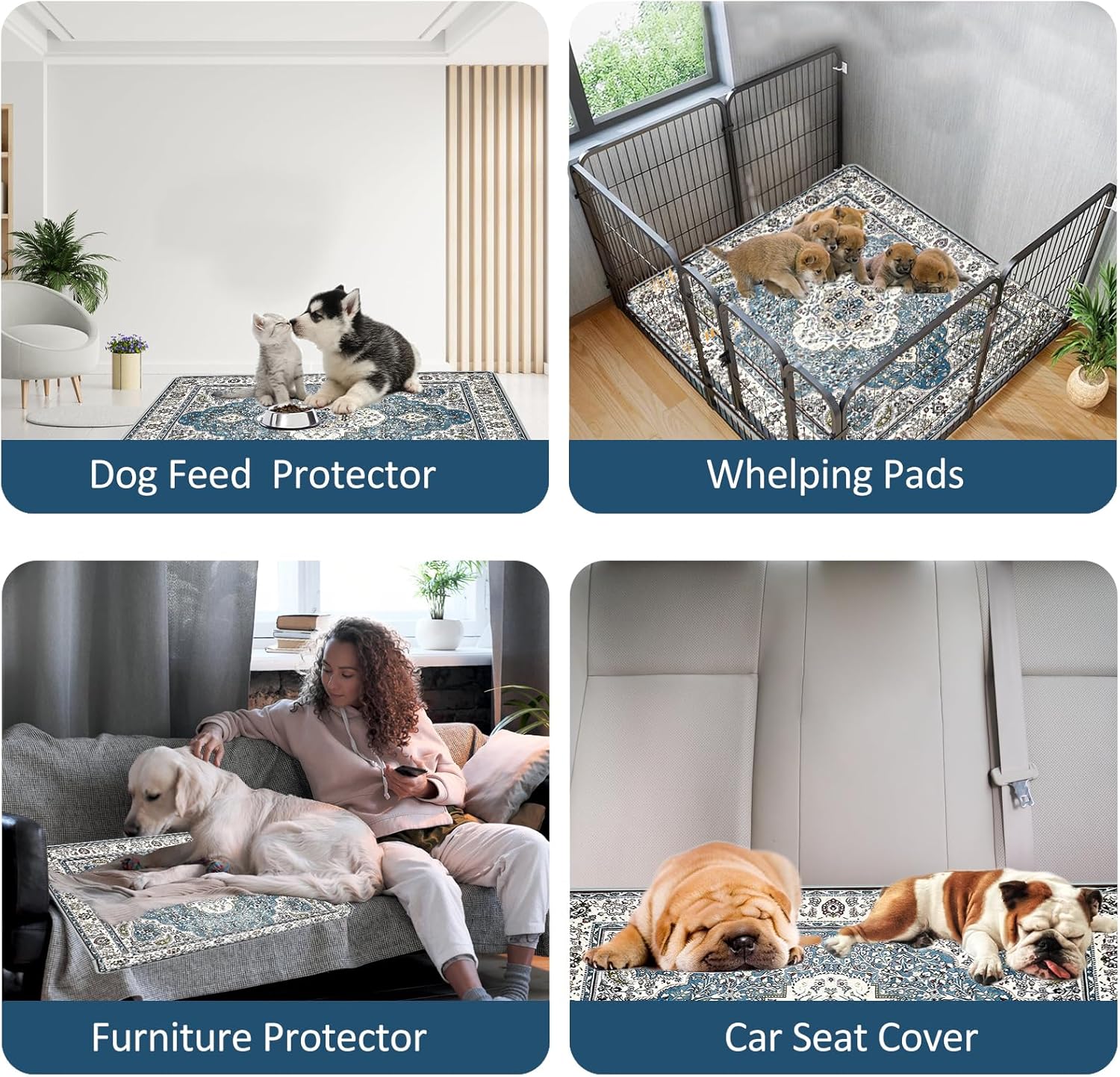 - ๐พใ๐๐ง๐ก๐๐ง๐๐๐ ๐๐จ๐ง-๐๐ฅ๐ข๐ฉ ๐๐๐ซ๐๐จ๐ซ๐ฆ๐๐ง๐๐ใUpgraded with non-slip PVC rug at the bottom, this mat firmly stay on the floor or crate, ensuring the safety of your dog. Not only do puppy reusable pee pads protect against scratches and dirt, they also feature stylish tie-dye and bohemian designs that add a decorative touch to your home.