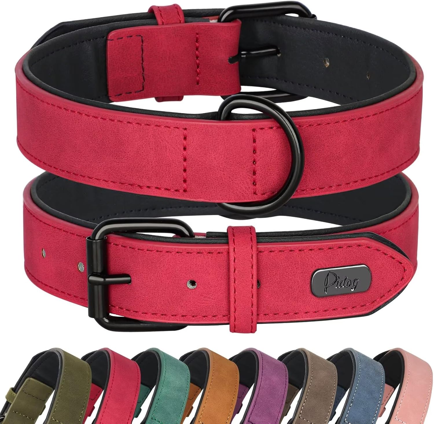 Didog Soft Padded PU Leather Dog Collar, Breathable and Adjustable Red Dog Collars for Medium Dogs, Comfortable for Daily Walk, Red, L Fit Neck 13-17"(22-44 lbs)