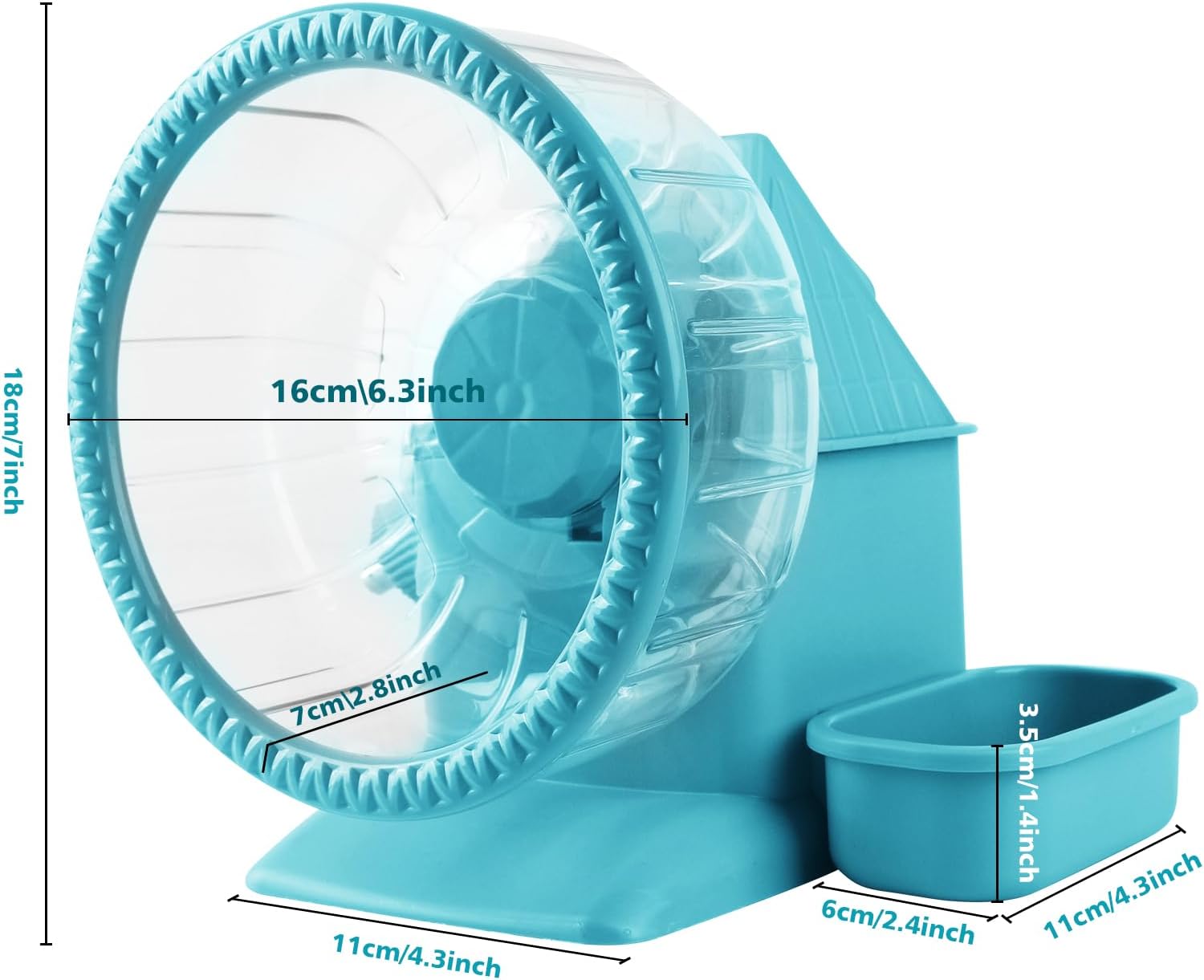 - 4 in 1 Design: The hamster exercise wheel consists of a silent hamster wheel, a detachable hamster food bowl, a No Drip hamster water bottle, and a stable shelter base. Create a perfect habitat for your beloved pet.