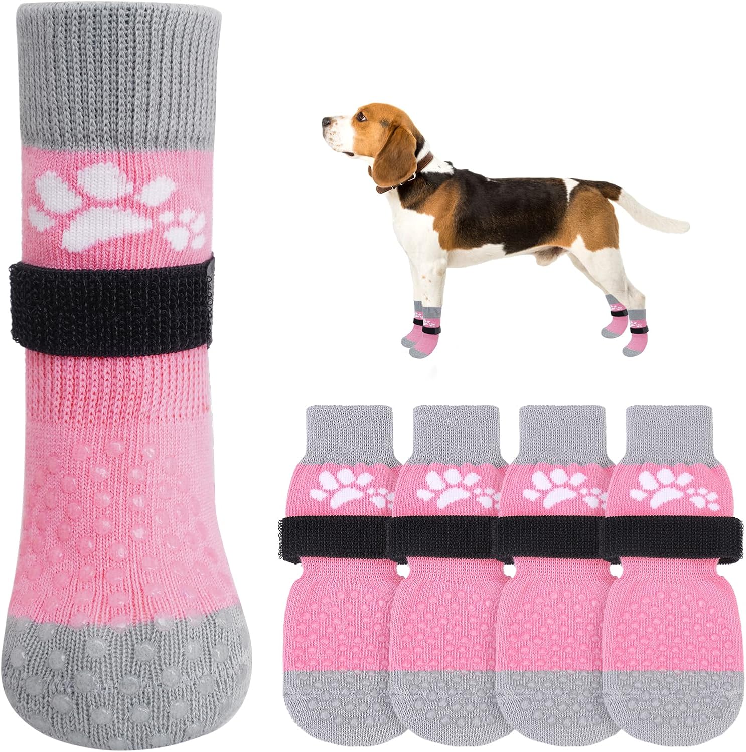 - ANTI-FALLING ELASTIC BAND DESIGN: Extra adjustable, removable waistband allows the socks to fit snugly on playful pet's paws, not easy to fall off. You can use the black elastic loops to adjust the tightness of your dog's socks (Note: Don't fix it too tight, so your dog will feel comfortable) Let your dog won't fall off even during walks or runs.