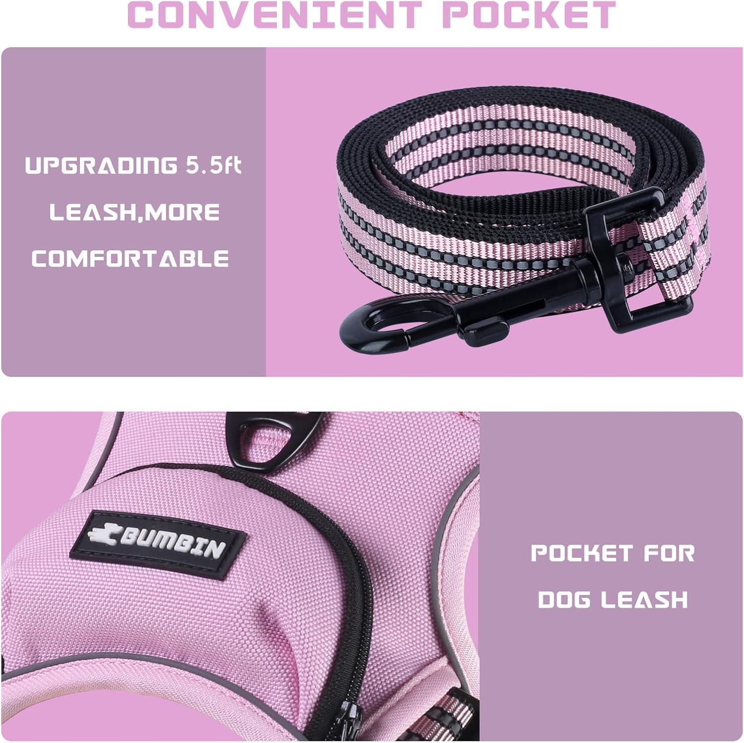 BUMBIN Dog Harness for Large Dogs, No Pull Adjustable No Choke Pet Vest with Dog Leash Fit Smart Reflective Pet Walking Harness for Training Easy Control Soft Handle Pink M