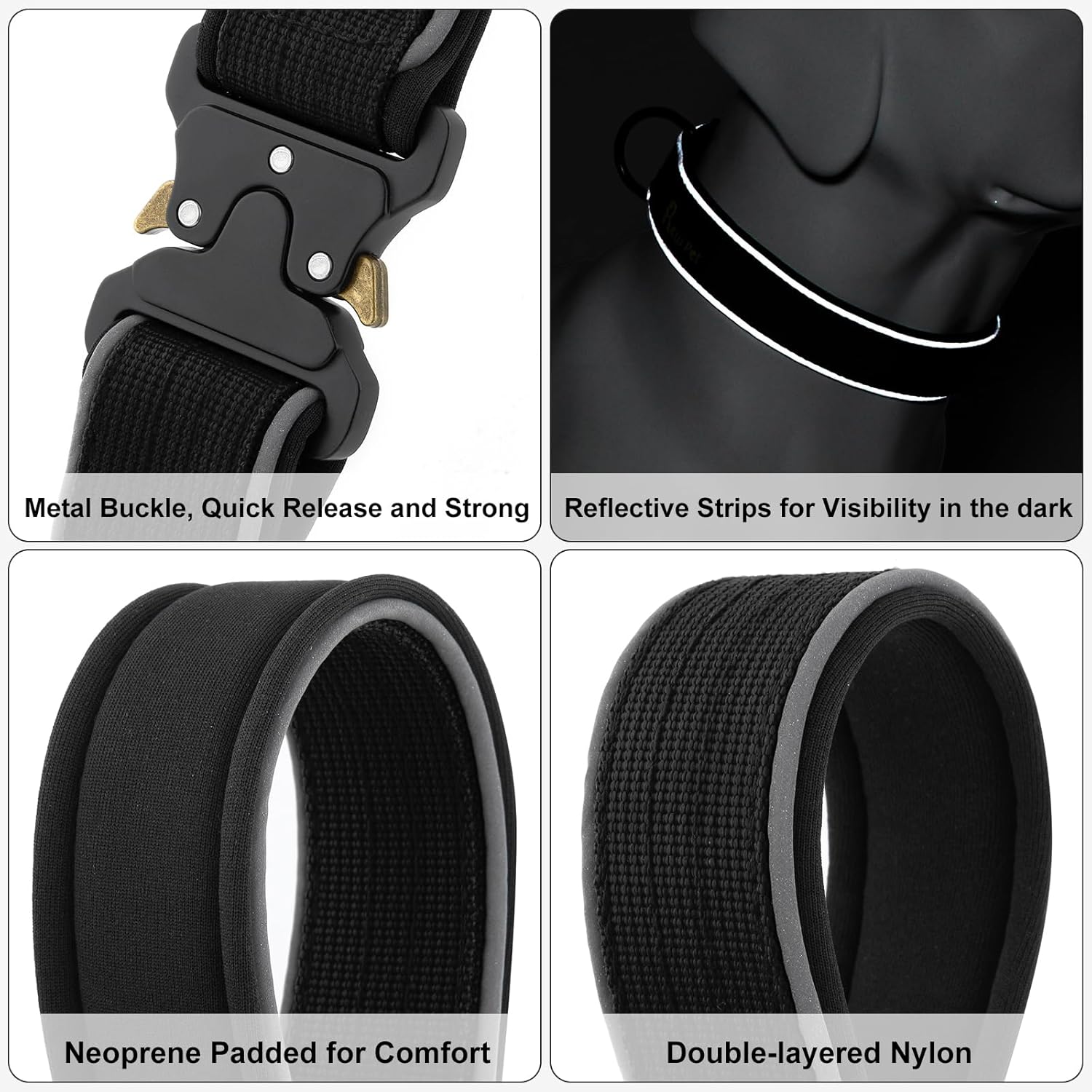Plutus Pet Tactical Dog Collar, Reflective, Adjustable Heavy Duty Dog Collar, Soft Padded and Comfortable, for Small Medium and Large Dogs (Black, M)