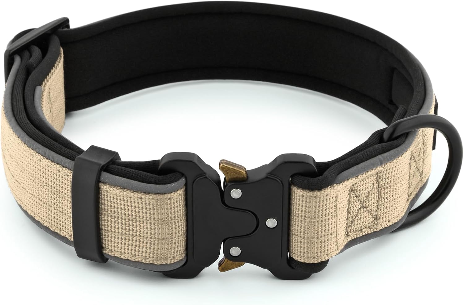 Plutus Pet Tactical Dog Collar, Reflective, Adjustable Heavy Duty Dog Collar, Soft Padded and Comfortable, for Small Medium and Large Dogs (Beige, S)