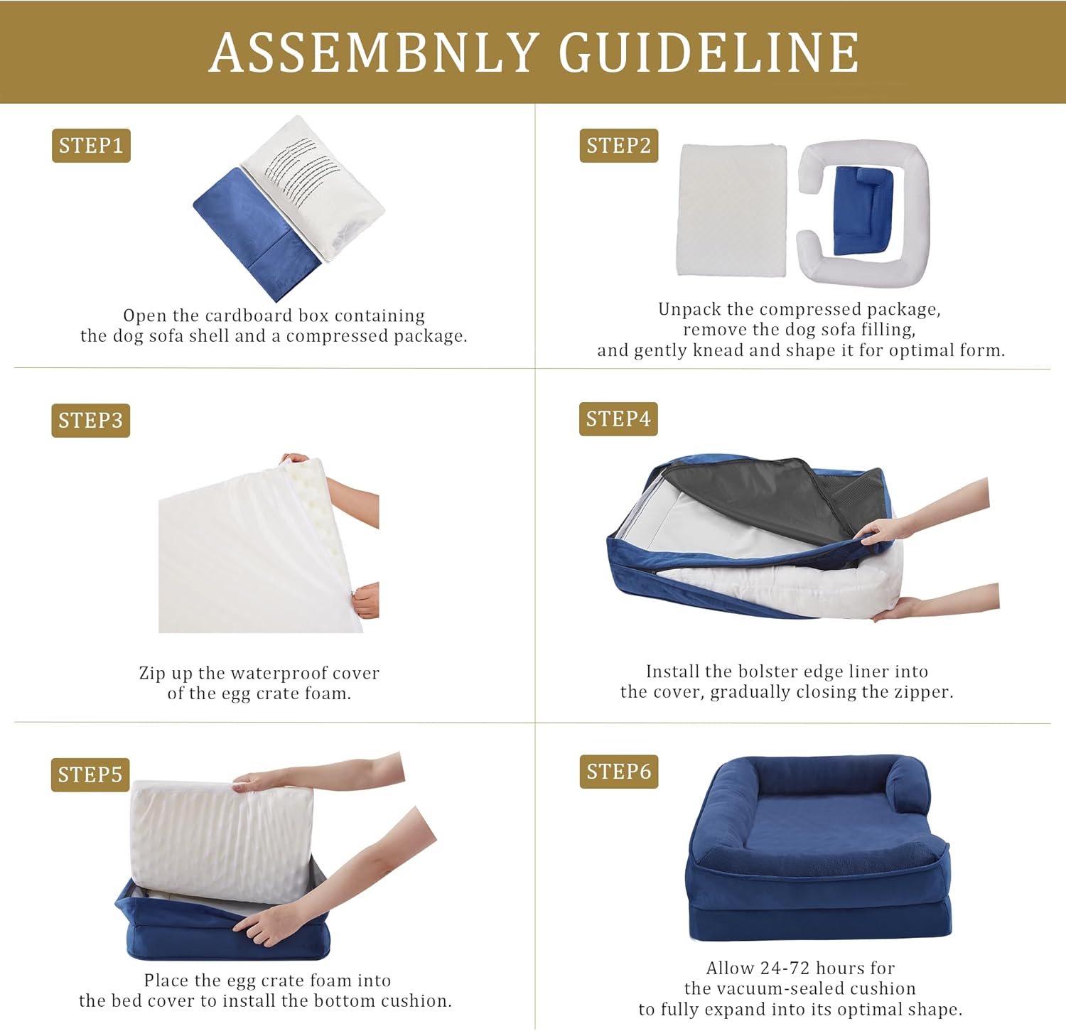Bedfolks Orthopedic Dog Bed XL, Waterproof Dog Sofa Bed for Extra Large Dogs, Egg Foam Pet Couch Bed with Removable Washable Cover and Nonslip Bottom, Navy Blue