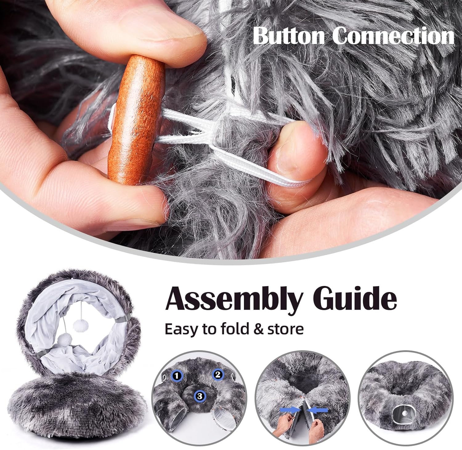 - 【Assembled into Different Shapes】Odoland cat donut tunnel is made with high-quality soft plush material. You can shape the tunnel in a straight, S-shaped or even circular form. The fur cat soft sofa can be placed inside the cat tunnel or used separately.