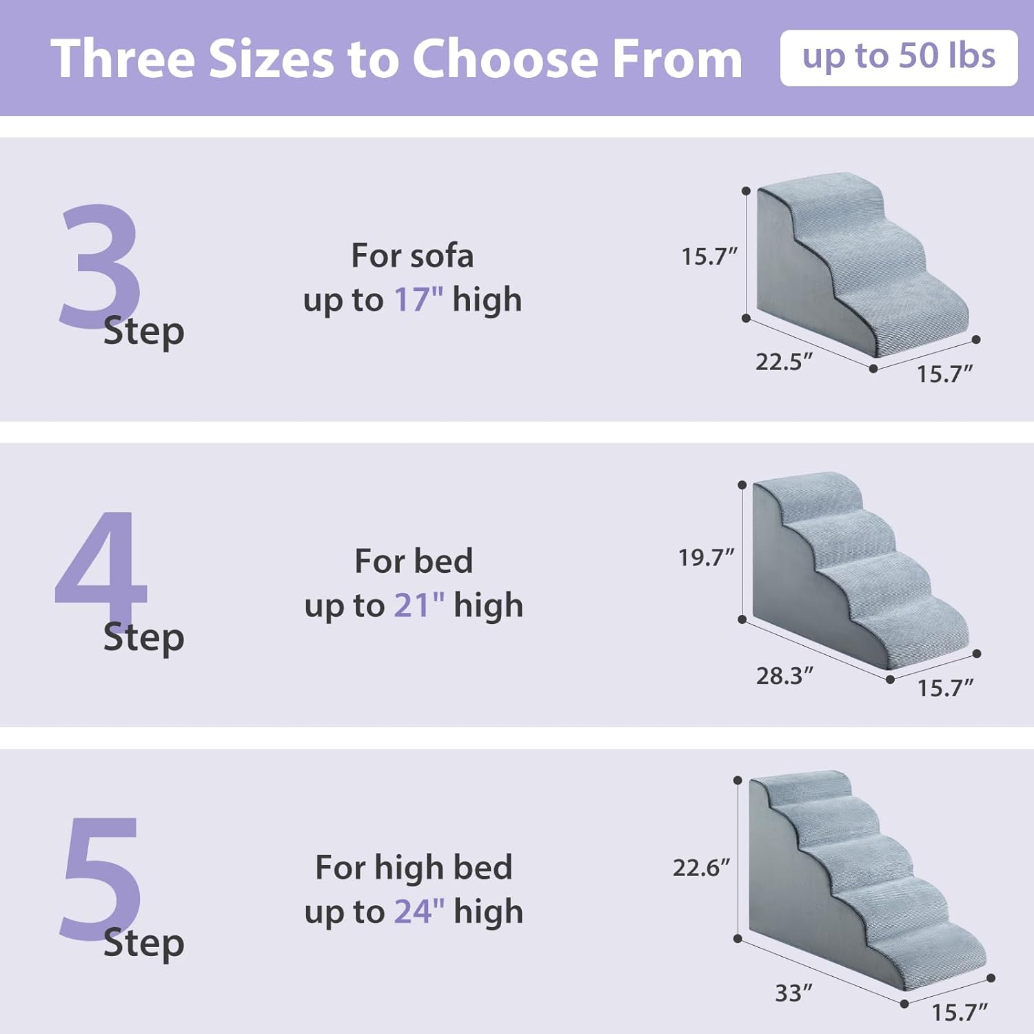 - 【Sturdy Support】The high-density support foam of the pet steps for bed, Like a sturdy bridge, Whether it's a kitten or a large dog, All can pass with safe, Dog bed stairs provides a sturdy climbing path for your pets.