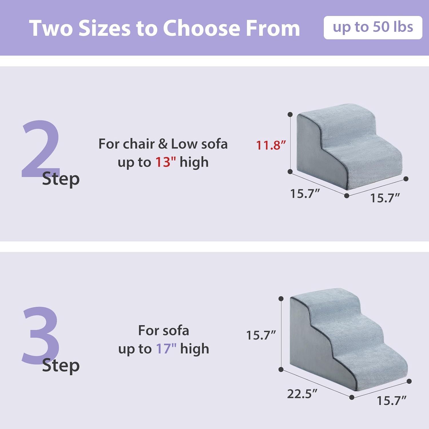 Dog Stairs for Small Dogs, 2-Steps Dog Ramp for Couch, Pet Stairs with Highly Supportive Foam and Non-Slip Bottom, Pet Steps for Cat & Doggie (High 11.8 Inch)