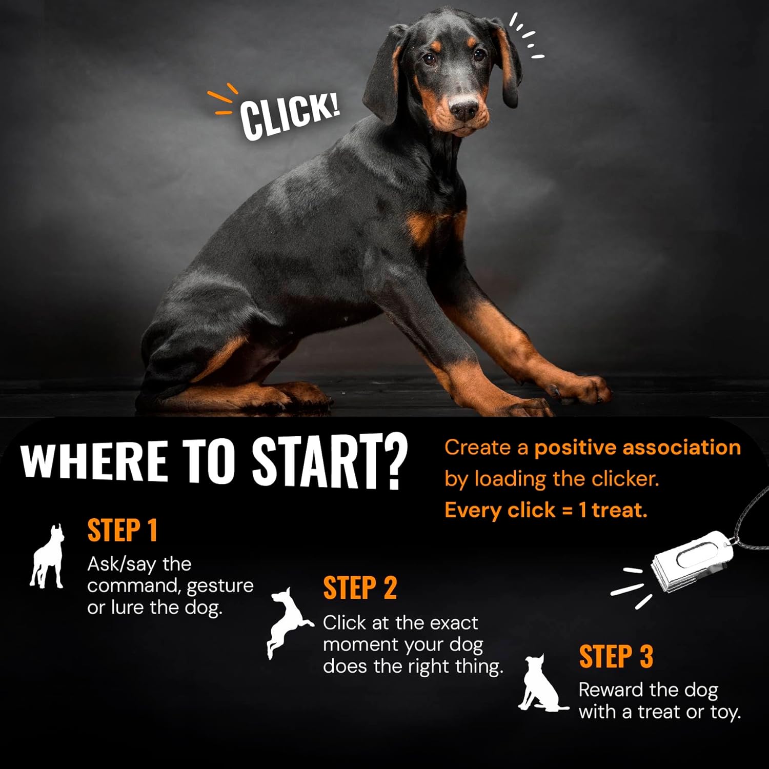 - Reinforce Positive Behavior: Our white dog training clickers are a great way to stimulate positive behavior. With this dog clicker trainer, you will be able to communicate what you want to your dog, at any specific moment. Reward your buddy with the clicker sound